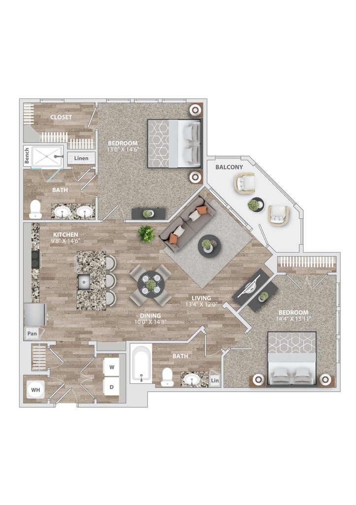 Apartment Model: B112 Bedroom, 2 Bath, 1371 sq ftUnavailable![]() - B11 - Floorplan 1 - B132 Beds, 2 Baths, 1418 sq ft- Model Gallery- Floorplans- Availability Details- Availability Date - Unit - Sq Ft - Deposit - Unavailable - B13 - 1418 sq ft - $500 - Model Amenities and Features- Features- Storage Space