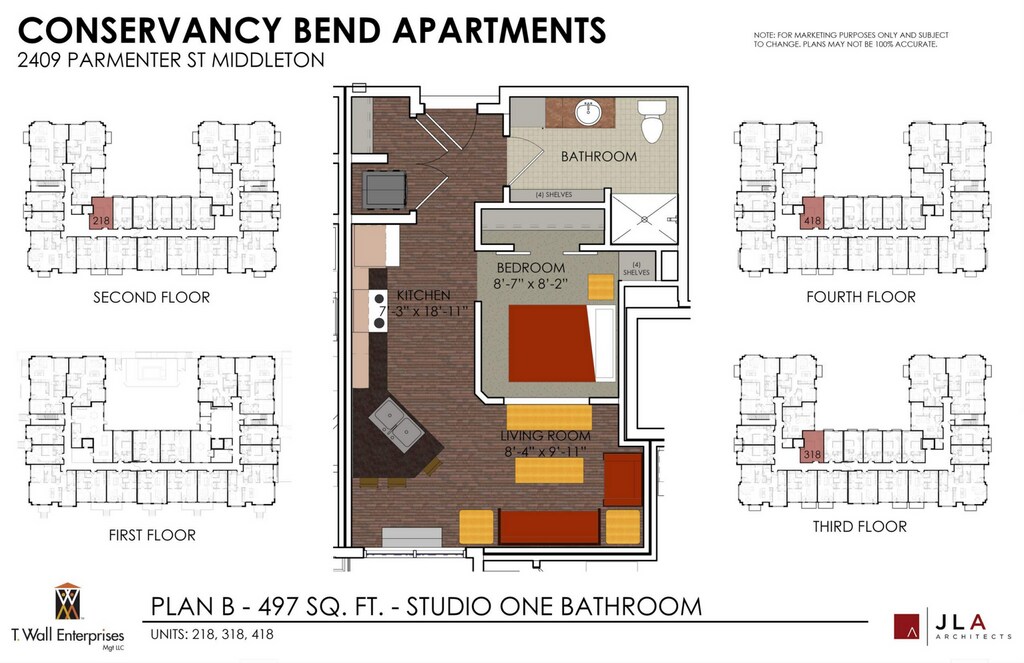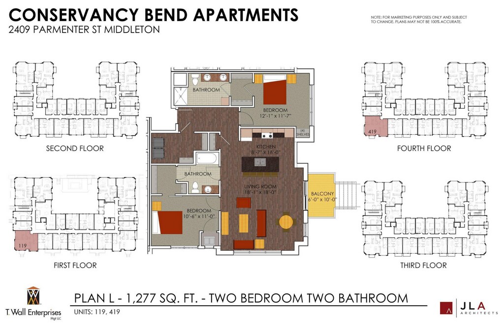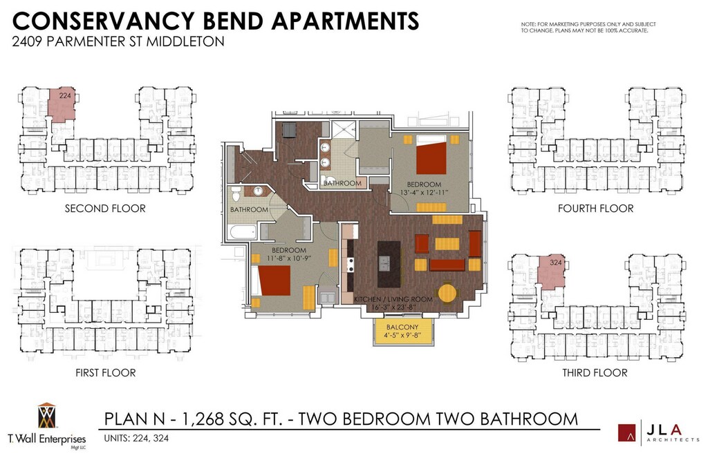 Stunning TOWNHOMES and APARTMENTS located near the Conservancy in the heart of Middleton! Conservancy Bend offers 2 bedroom Townhomes with attached garage and executive studio, 1, 2, and 3-bedroom apartment homes. Ideally situated on Parmenter Street in Middleton, the convenient location provides easy and efficient access to all your home, work and leisure destinations. We are also within walking distance to shopping, schools, and the abundance of restaurants in charming downtown Middleton. Relax and rejuvenate in the hot tub, lounge around the beautifully landscaped community patio and enjoy the fire pit, or hang out in the upscale Club Room to enjoy a game of pool or catch the game on the large screen HDTV. Just steps from your front door, you can also immerse yourself in the natural beauty and serenity of Pheasant Branch Conservancy. The nature preserve offers miles of scenic, groomed hiking and biking trails. Enjoy nature in the midst of your neighborhood!