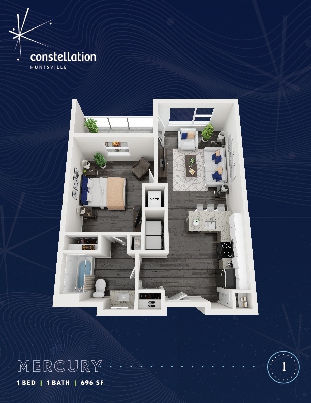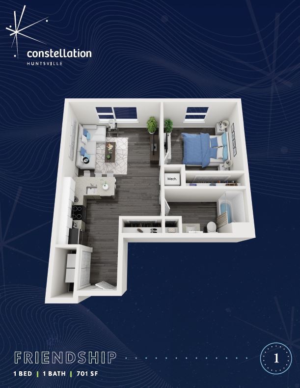 One visit to Constellation Apartments in Huntsville, AL, will help you find the home you desire. Located in an upcoming urban hub of the city, we offer multiple floor plans from roomy studio apartments to our largest three-bedroom apartments, our community is perfect for everyone to call home.
