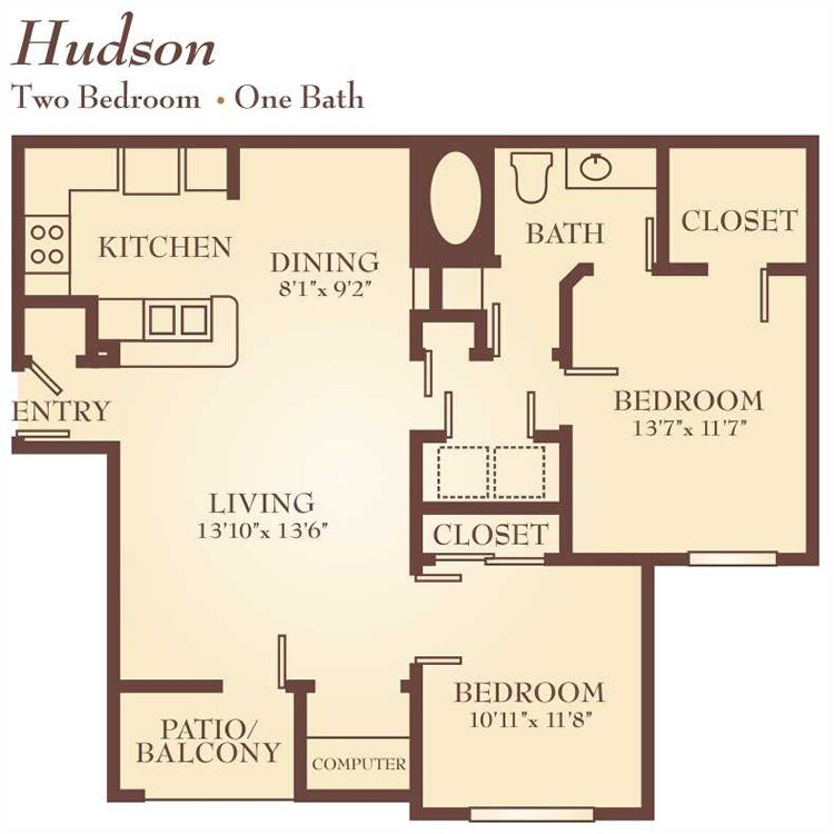 Apartment Model: Hudson2 Bedroom, 1 Bath, 918 sq ftUnavailable![]()