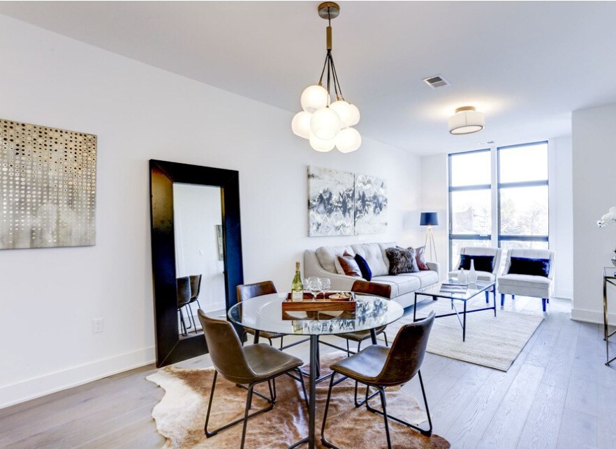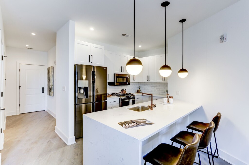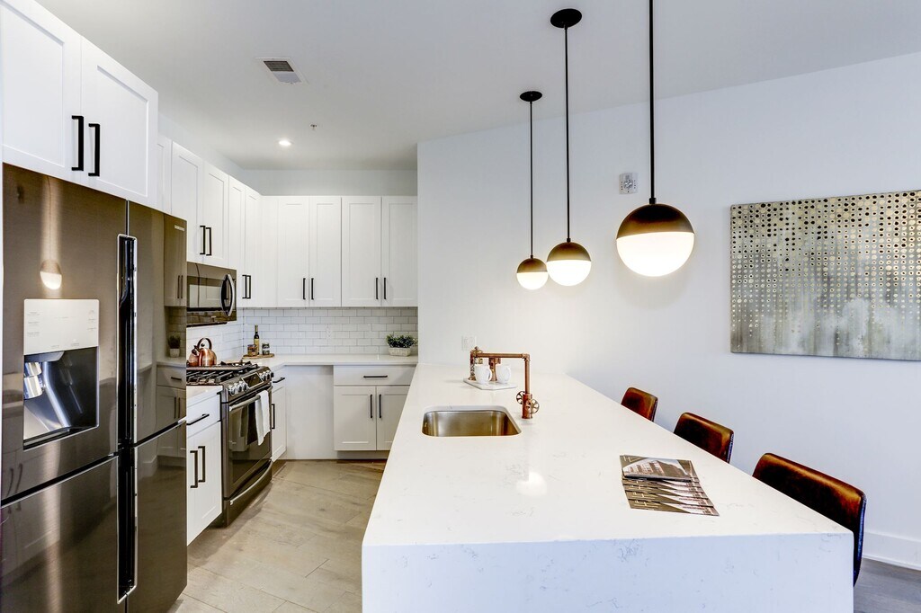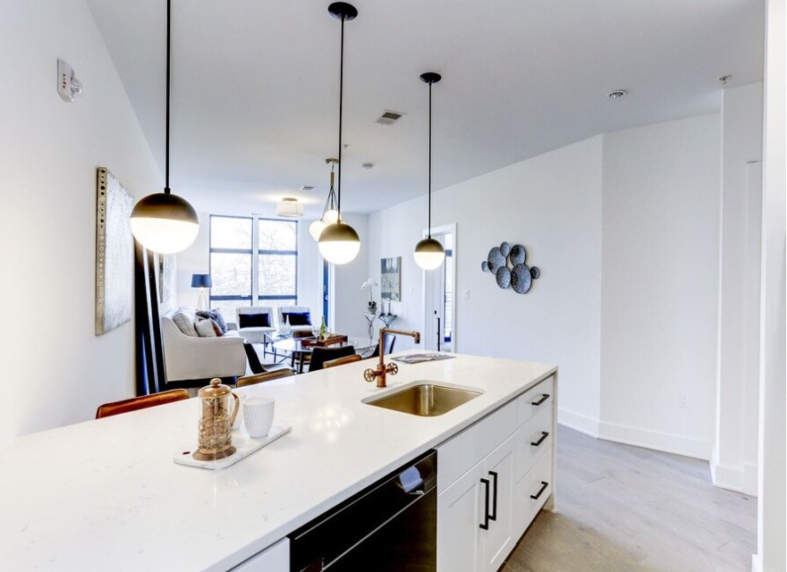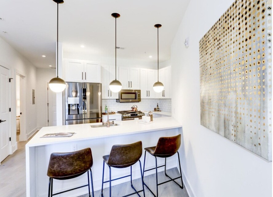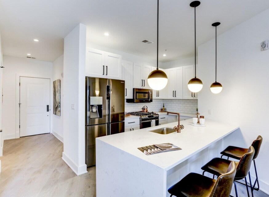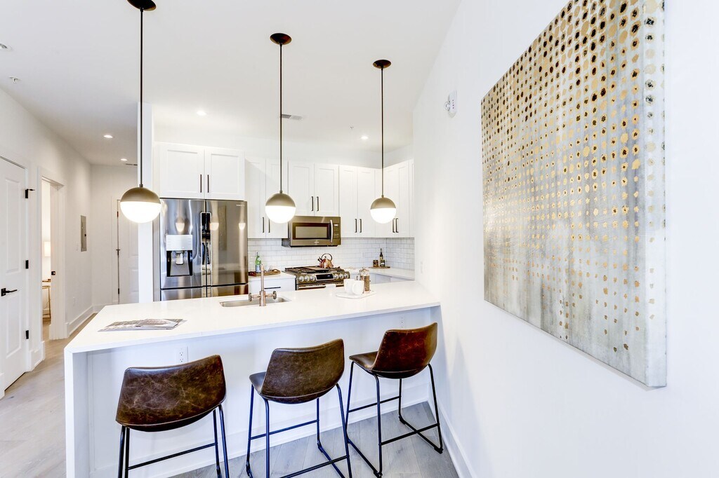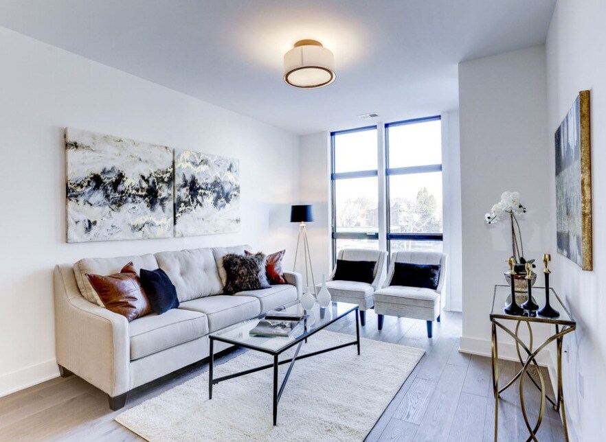 Large 2 bedroom / 2 bathroom at over 1, 000 sqft in the vibrant H Street neighbor. Sleek City Living at it's Finest!!. A TRUE entertainer's dream with open-concept living, this stunning condo features hardwood floors, curated lighting and floor-to-ceiling windows for an abundance of natural daylight. In the gourmet kitchen you find black stainless steel appliances with gas cooking and a quartz waterfall peninsula with breakfast bar that opens to the dining and living space. Both baths feature bronze fixtures & custom tile-work. Shopping, dining, entertainment, street car transportation service, anything you could ever need... right at your door step! Easy access to Whole Foods on H Street and Union Market.
