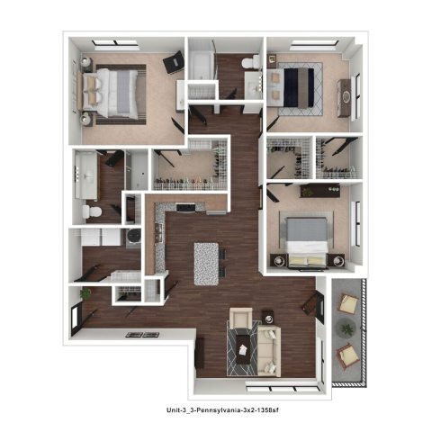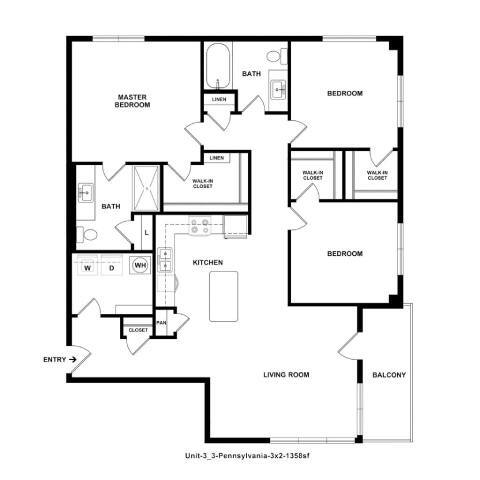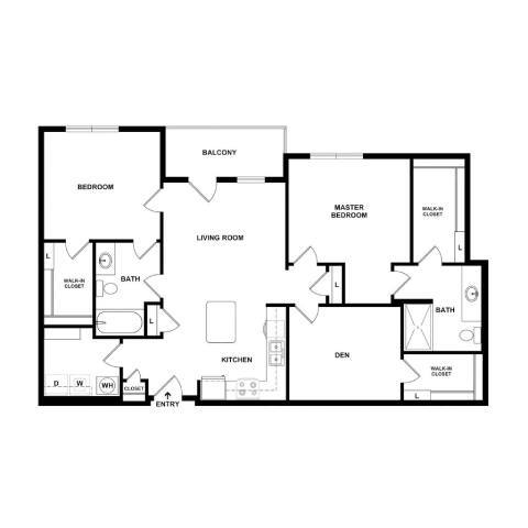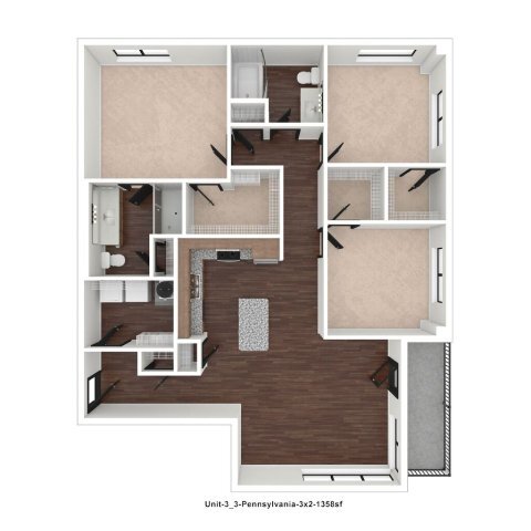 Delaware - Floorplan 3 Apartment Unit: 617Apartment Model: 1 Bed, 1 bath$1,9001 Bedroom, 1 Bath, 768 sq ftAvailable April 8, 20262 Bedrooms