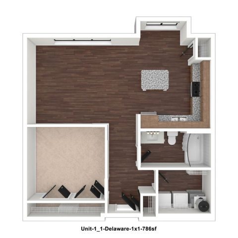 Apartment Model: Delaware$1,9001 Bedroom, 1 Bath, 768 sq ftAvailable April 8, 2026![]()