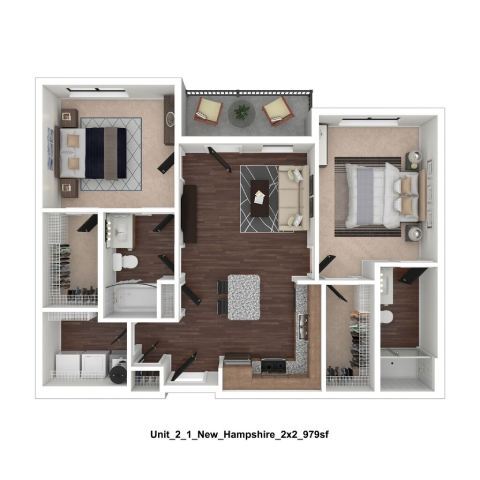 Apartment Model: New HampshireFrom $2,3552 Bedroom, 2 Bath, 979 sq ftAvailable February 28, 2026FloorplansPhotos![]()