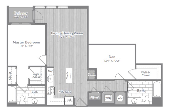 A1 - Studio with Den - Floorplan 1 Apartment Unit: CN-2116AApartment Model: A1 - Studio with Den$1,7201 Bedroom, 1 Bath, 535 sq ftAvailable Now![]()