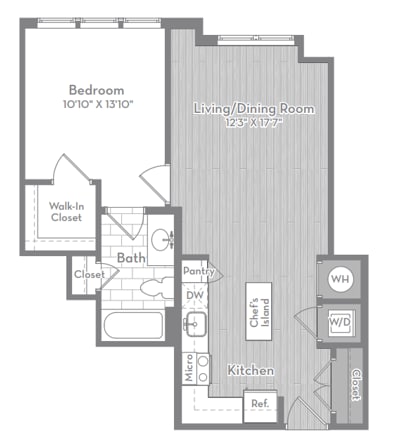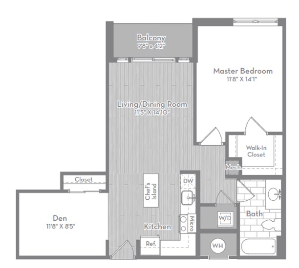 Apartment Model: A1 - Studio with DenFrom $1,7201 Bedroom, 1 Bath, 535 sq ftAvailable Now![]()