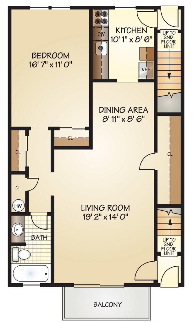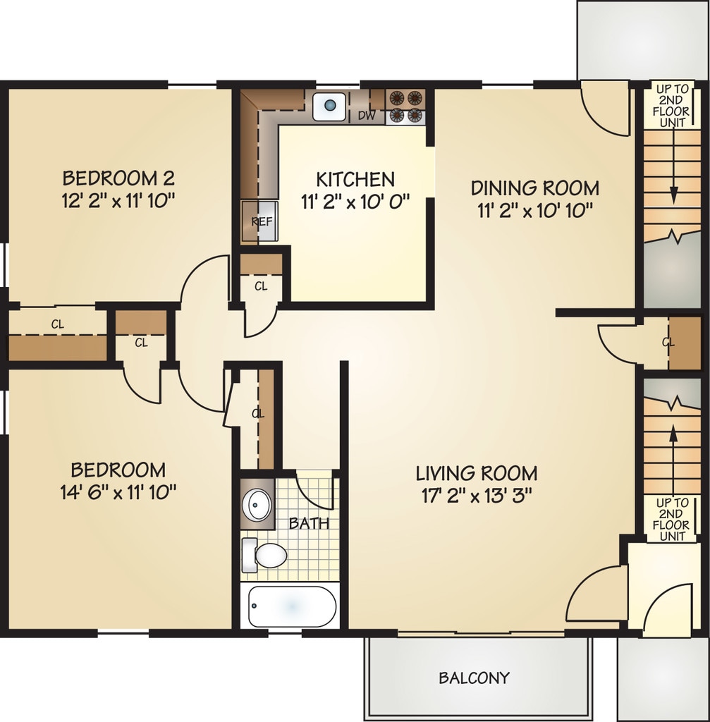 2 Beds, 1 Bath, 875 sq ftAvailable January 1, 2026Model Gallery