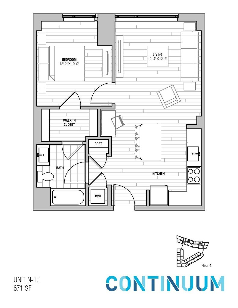 North Studio - Floorplan 1 Apartment Unit: N304Apartment Model: North Studio$3,073Studio, 1 Bath, 402 sq ftAvailable Now![]()