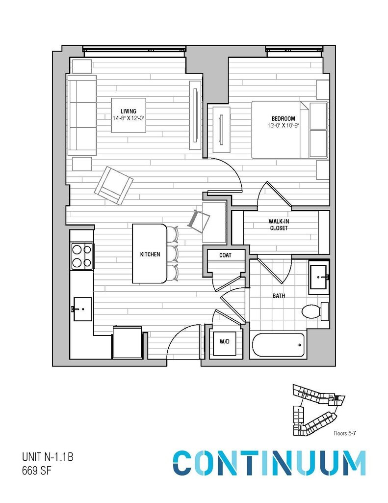 North Studio - Floorplan 1 Apartment Unit: N411Apartment Model: North Studio$2,856Studio, 1 Bath, 468 sq ftAvailable Now![]()