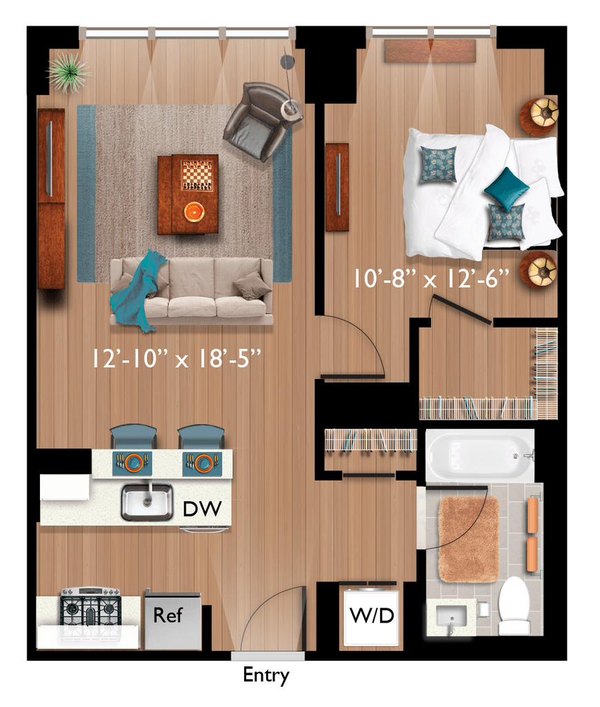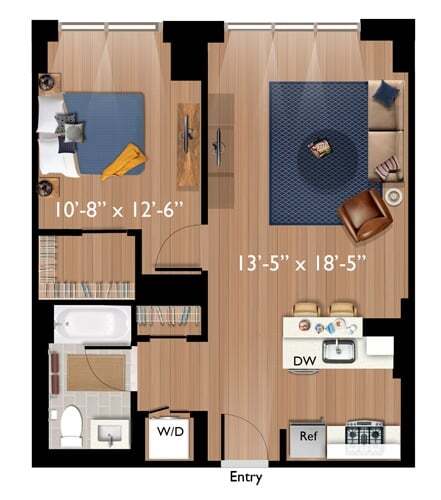 Studio, 1 Bath, 495 sq ftAvailable NowModel Gallery