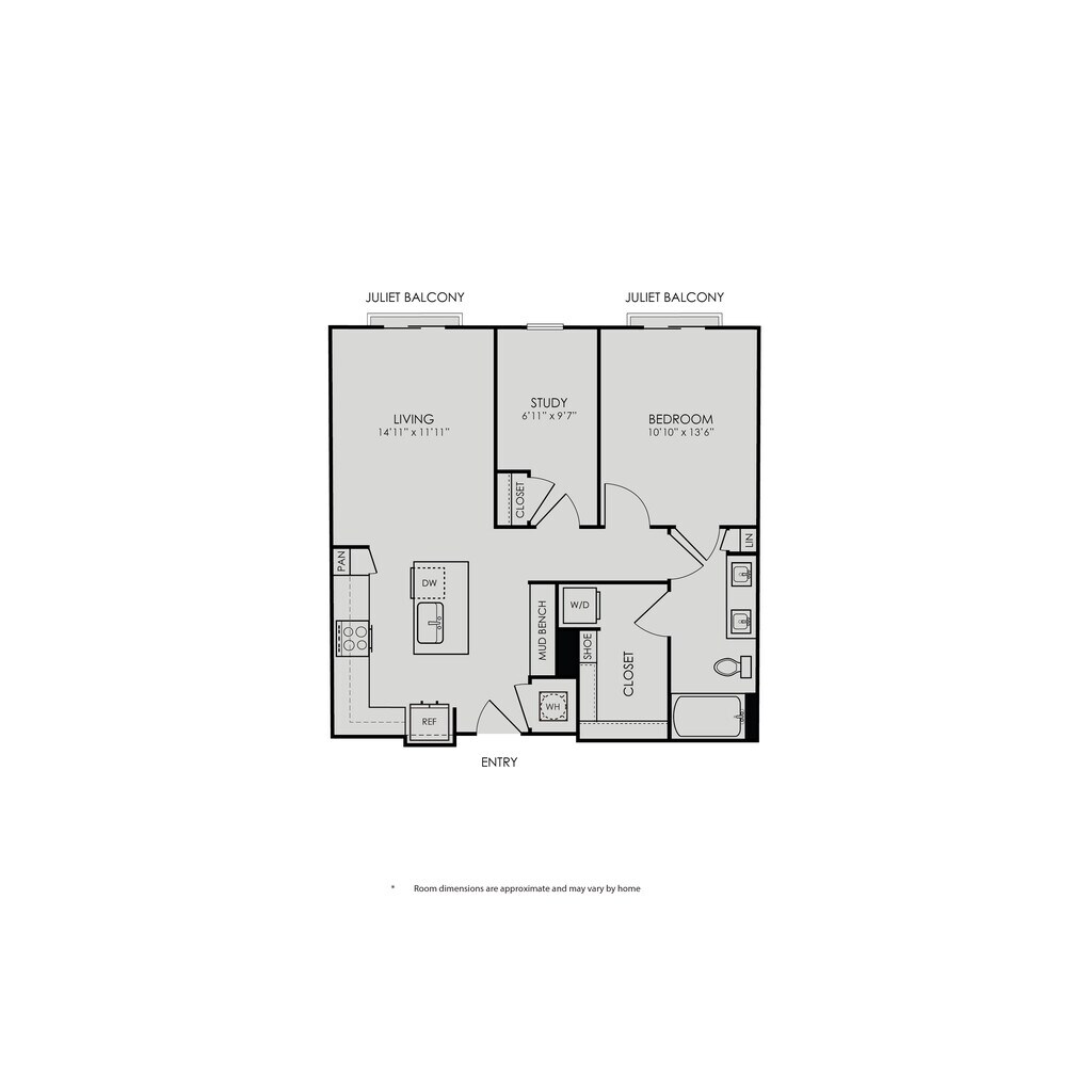 Studio, 1 Bath, 591 sq ftAvailable NowLargest StudioThis is the largest Studio at this PropertyModel Gallery