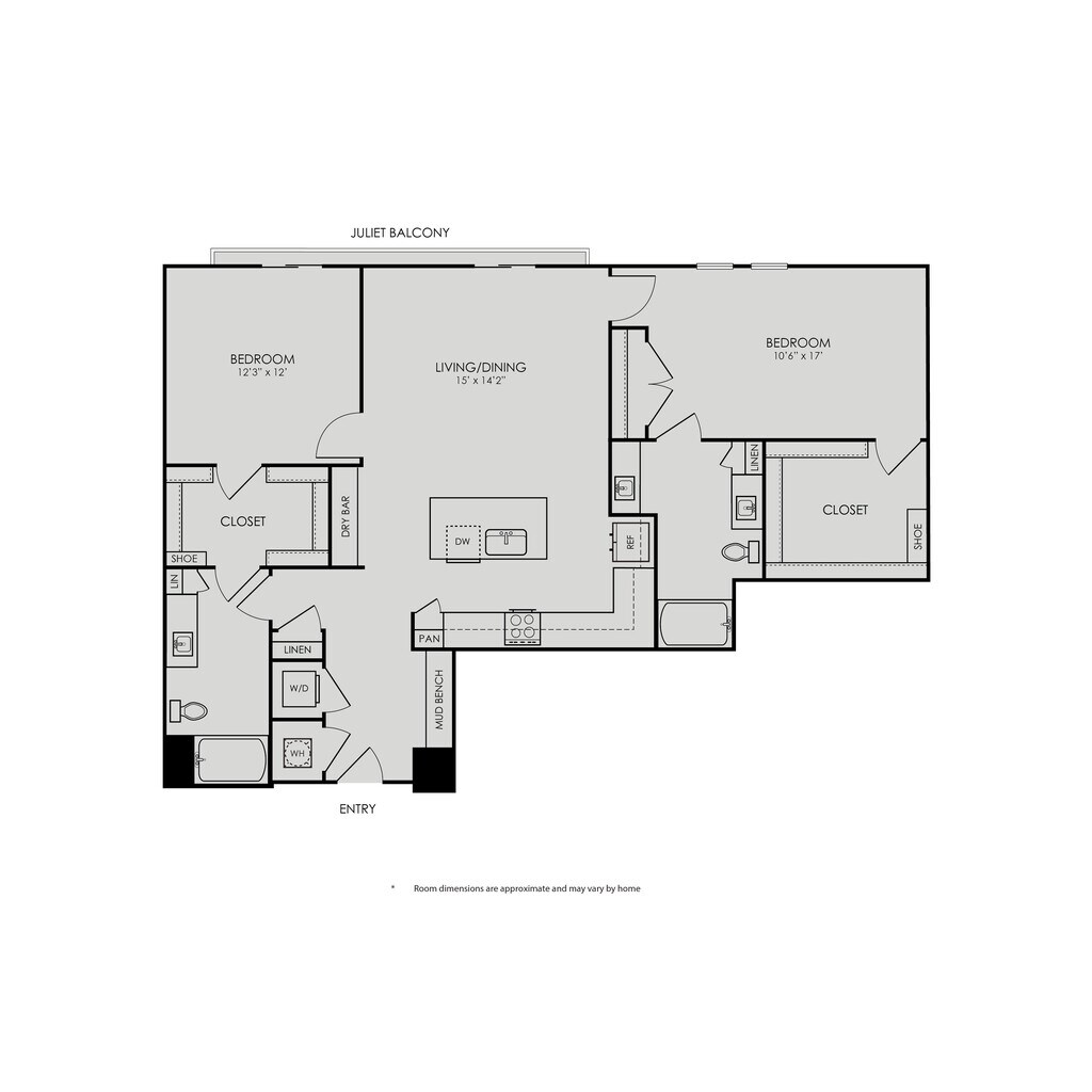 1 Bed, 1 Bath, 637 sq ftAvailable NowModel Gallery