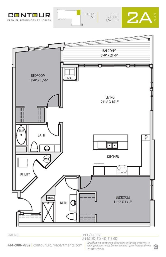 Price Availability Date Unit Sq Ft Deposit $2,625 Available Now Contour - Plan 2A 1528 sq ft $1,500 Model Amenities and Features