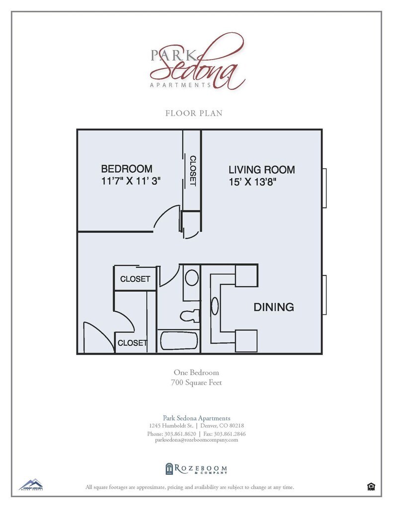 1 Bed, 1 Bath, 700 sq ftAvailability Details