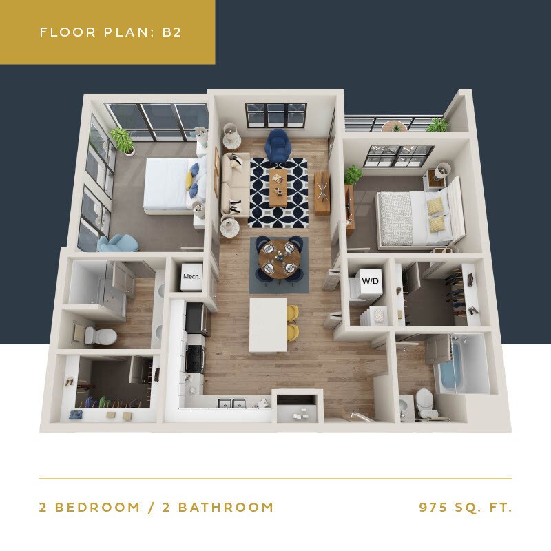 2 Beds, 2 Baths, 975 sq ftModel Gallery