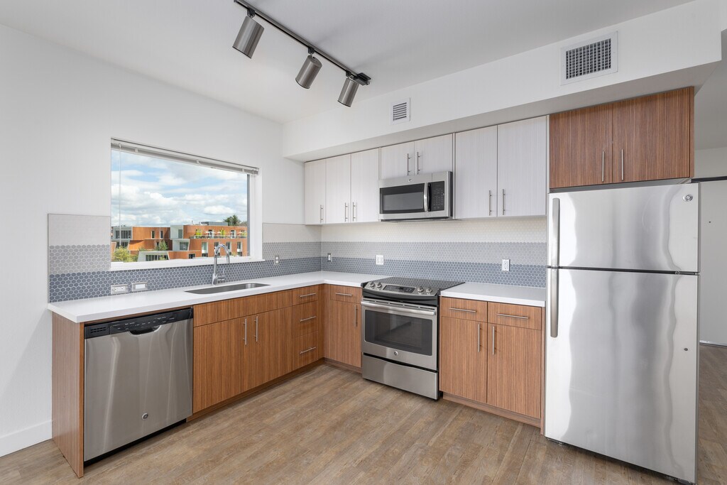 High-end design meets modern convenience at Cook Street apartments in the Williams District near downtown Portland. Your new studio, one, or two bedroom apartment in North Portland, OR, offers a well appointed living area and picture windows with breathtaking city views. Eco-friendly and crafted from natural Northwest materials, our apartments help you live your perfect Portland life. You will appreciate the convenience of being located near I-5 and I-405 for quick access to nearby restaurants and eclectic shops as well as local nature parks such as Lillis Albina City Park. Plus, our location offers a seamless commute to major area employers such as OHSU, Providence Health, and Kaiser Permanente. Contact us today to reserve your new luxury apartment at Cook Street.