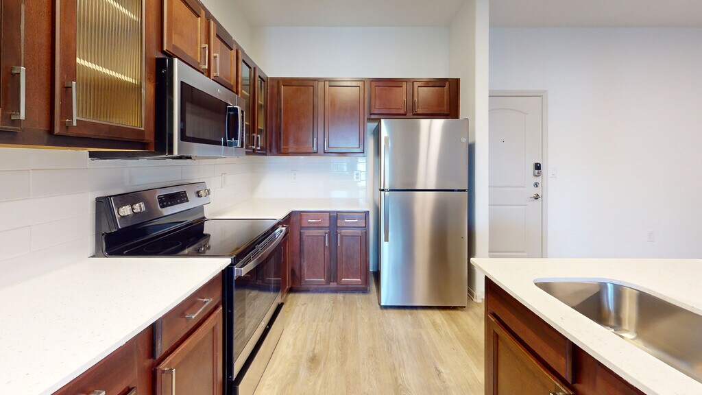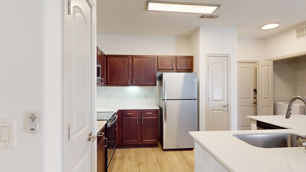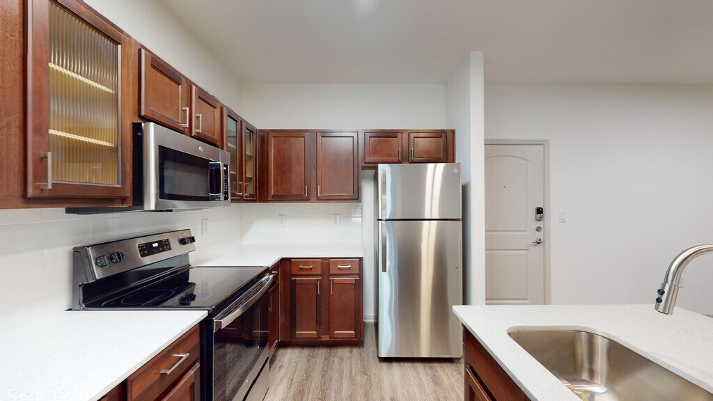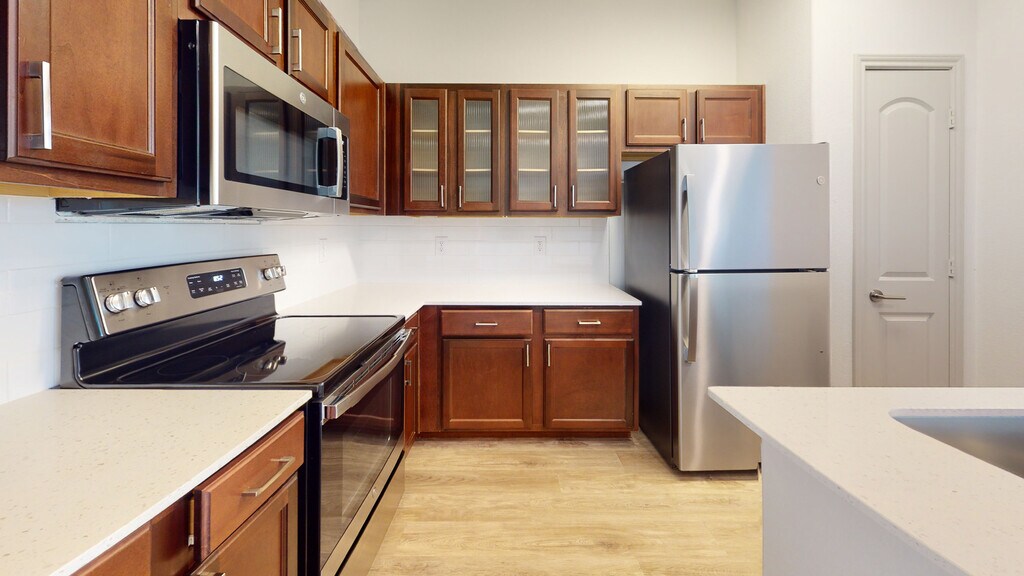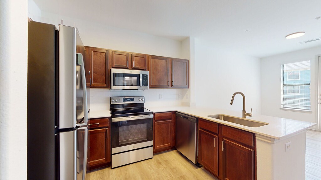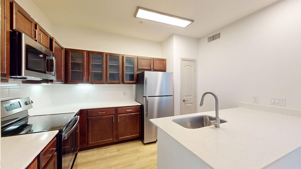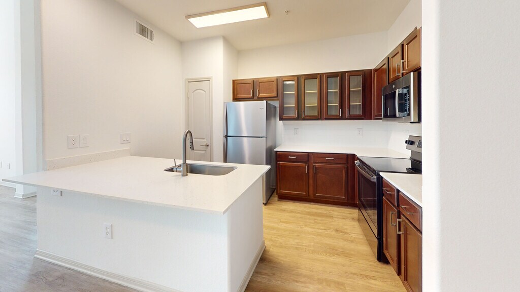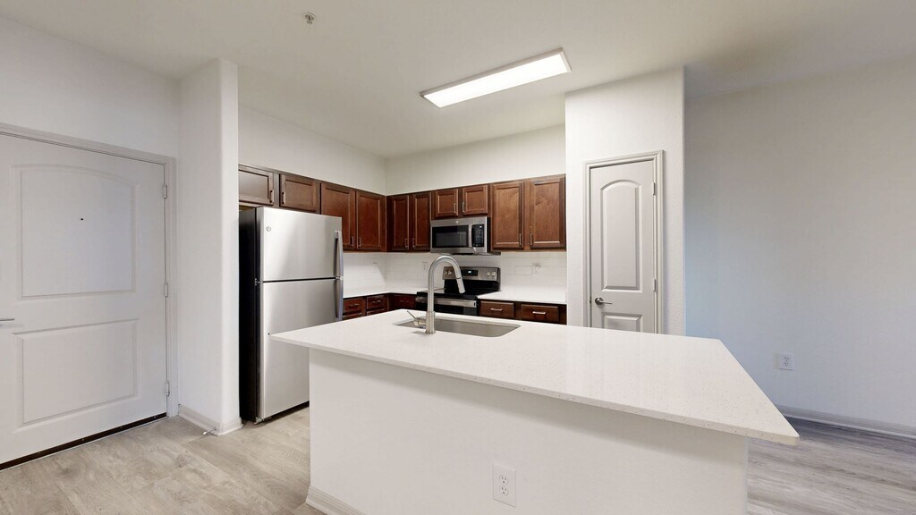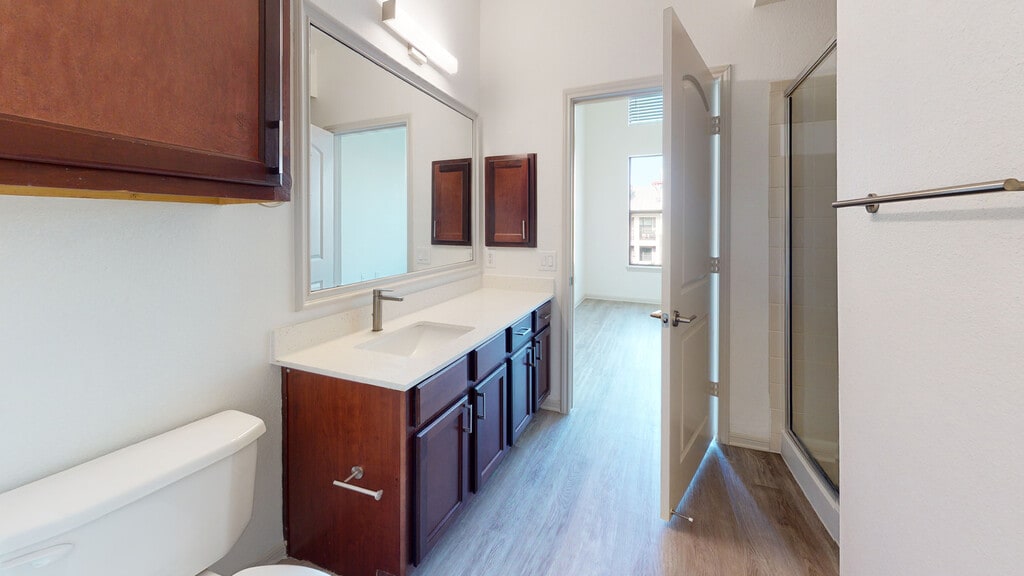 Cool Springs at Frisco Bridges is an inviting, pet-friendly apartment community in Frisco, TX. We offer studio, one-, and two-bedroom apartments for rent featuring spacious work-from-home friendly layouts, wood plank flooring, and private patios and balconies. Newly updated interiors feature quartz countertops, stainless steel appliances, wood plank flooring, and more. Here, enjoy close proximity to the best shops and eateries in Frisco, as well as easy access to beloved sports arenas like The Star and Dr. Pepper Stadium. Plus, commuters will enjoy more time at home with the Dallas-Fort Worth metroplex just 30 to 40 minutes away. That means more time can be spent poolside at one of our three resort-style pools or in the fully-equipped fitness center working towards your health goals. We are currently offering self-guided tours.