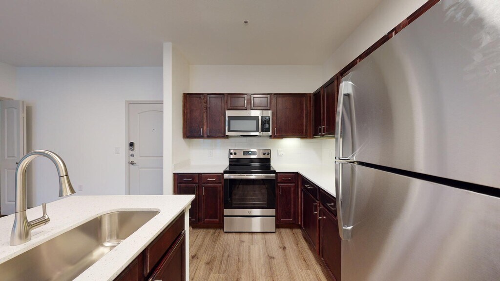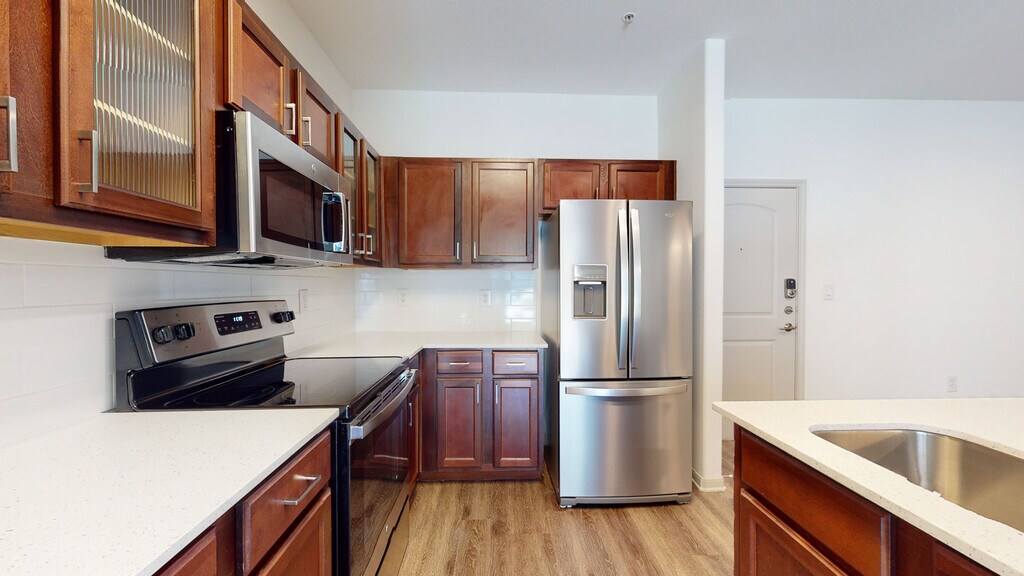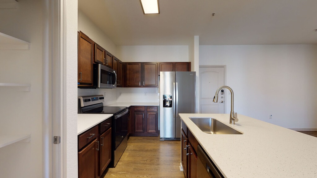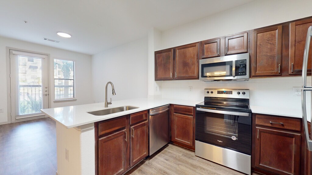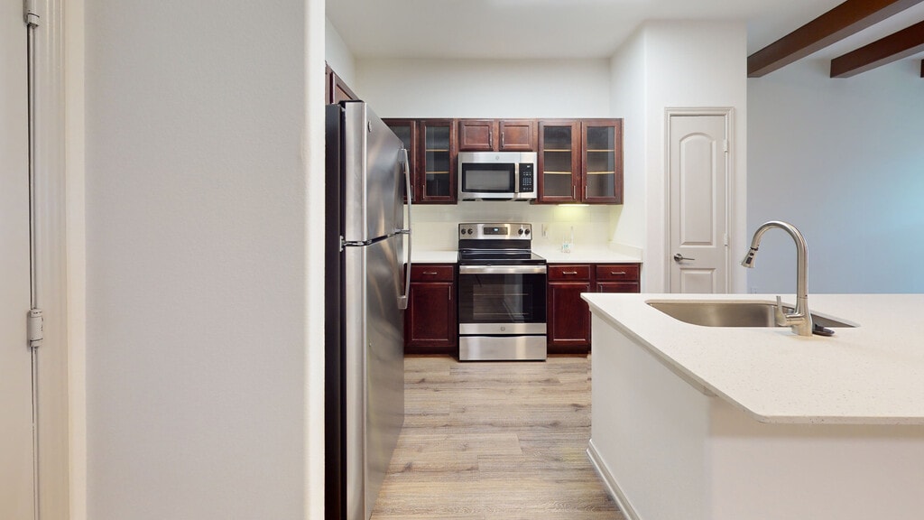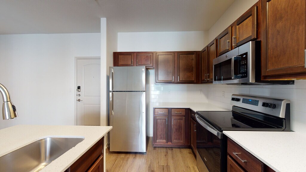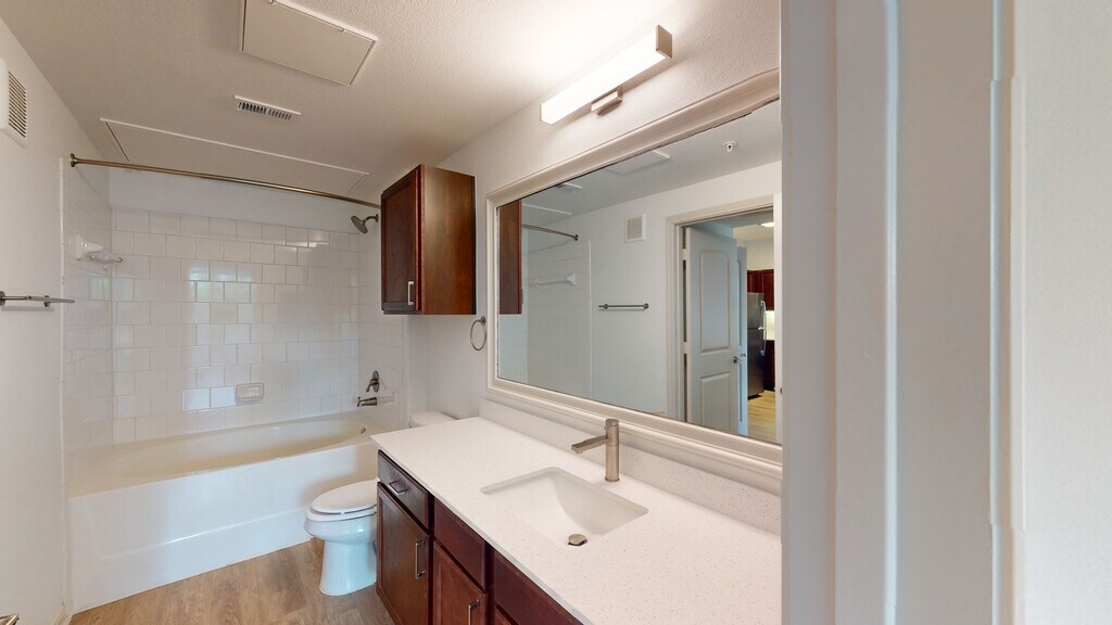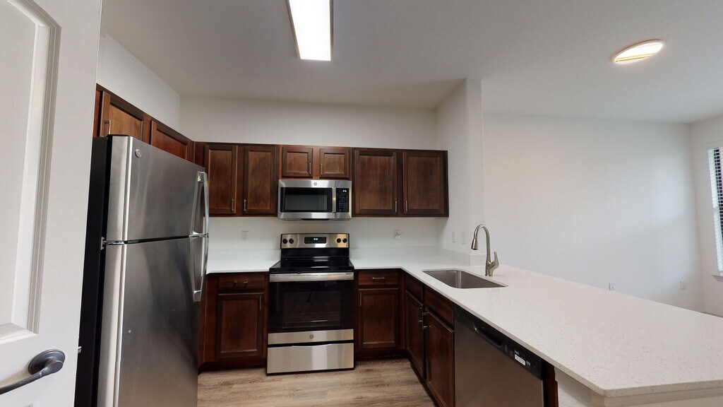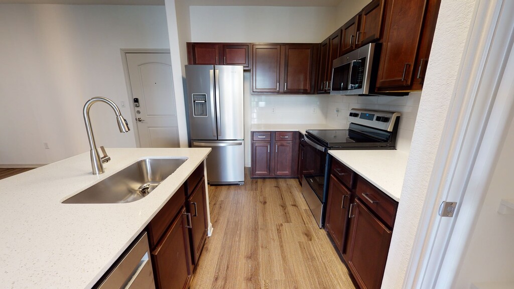 Cool Springs at Frisco Bridges is an inviting, pet-friendly apartment community in Frisco, TX. We offer studio, one-, and two-bedroom apartments for rent featuring spacious work-from-home friendly layouts, wood plank flooring, and private patios and balconies. Newly updated interiors feature quartz countertops, stainless steel appliances, wood plank flooring, and more. Here, enjoy close proximity to the best shops and eateries in Frisco, as well as easy access to beloved sports arenas like The Star and Dr. Pepper Stadium. Plus, commuters will enjoy more time at home with the Dallas-Fort Worth metroplex just 30 to 40 minutes away. That means more time can be spent poolside at one of our three resort-style pools or in the fully-equipped fitness center working towards your health goals. We are currently offering self-guided tours.
