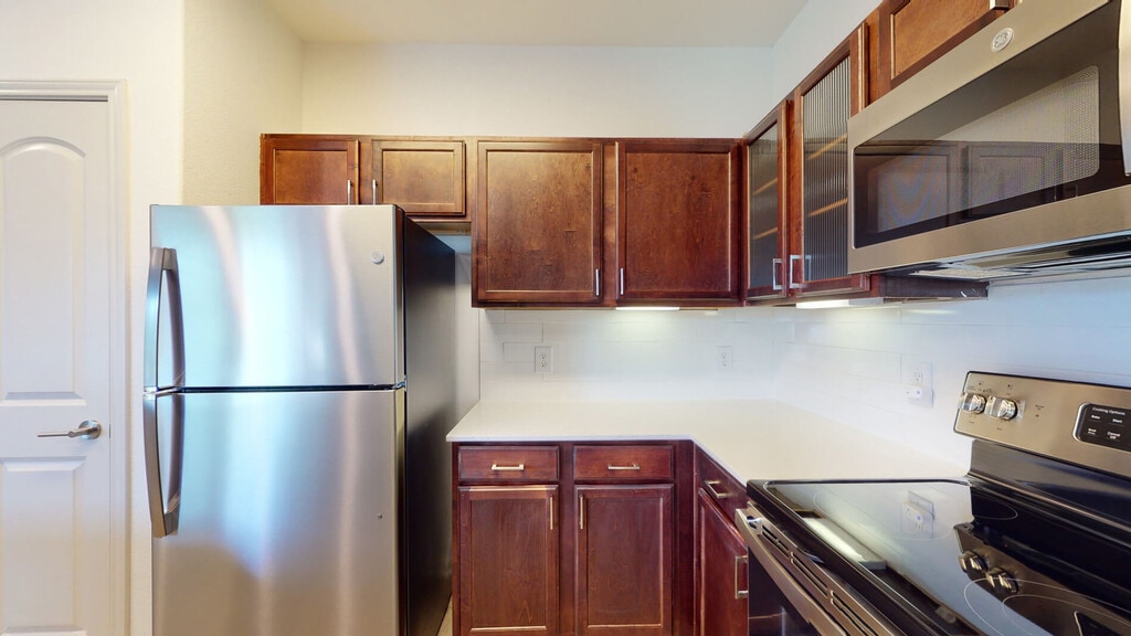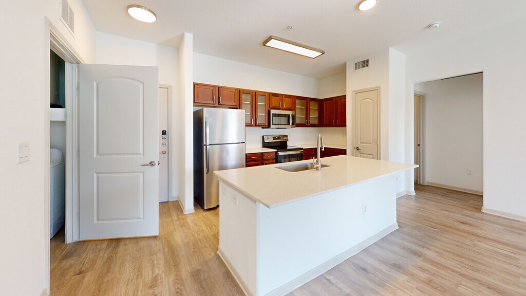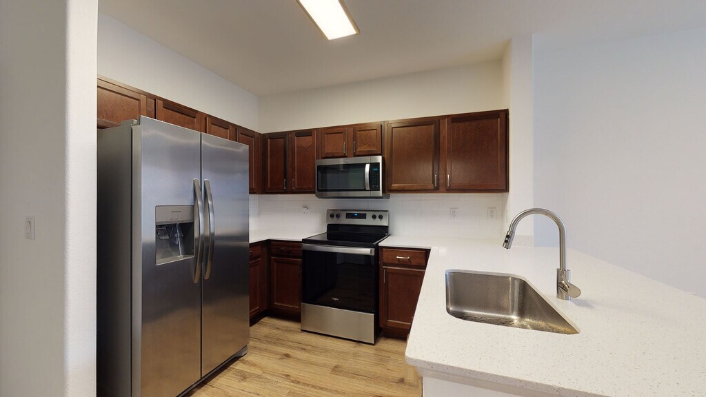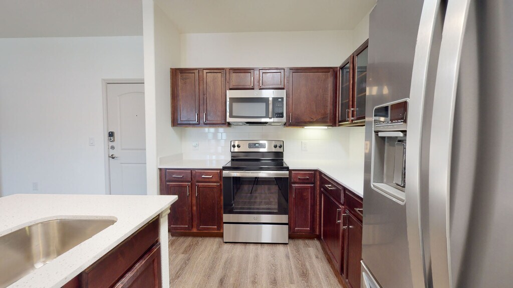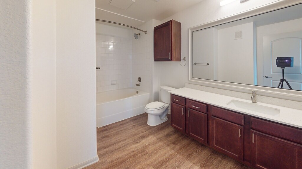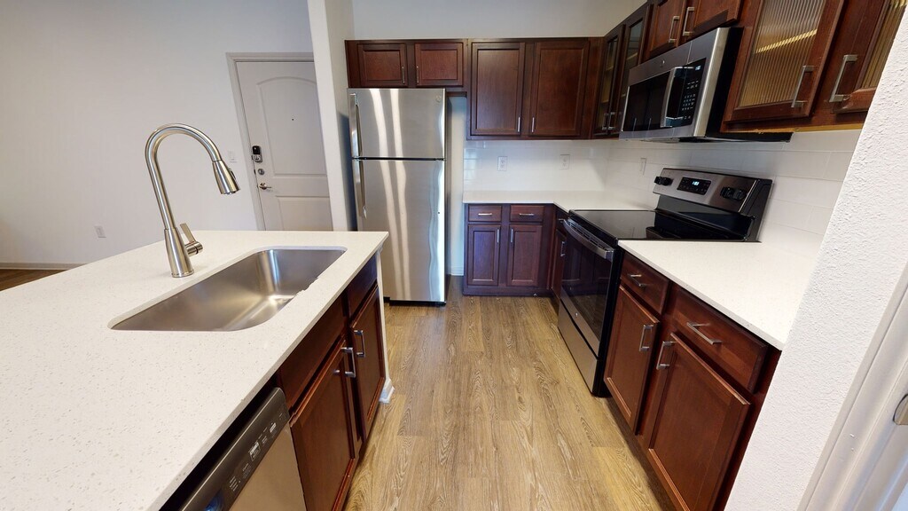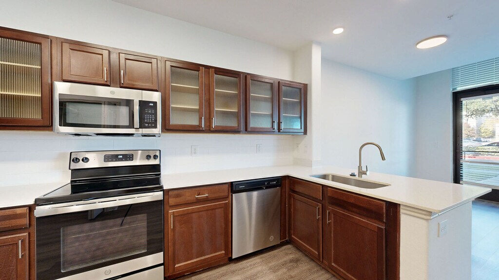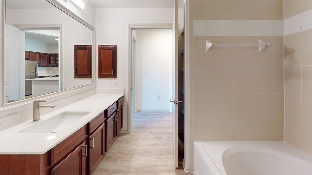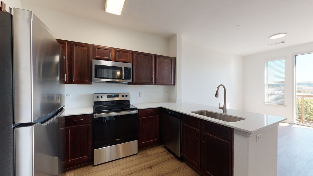 Cool Springs at Frisco Bridges is an inviting, pet-friendly apartment community in Frisco, TX. We offer studio, one-, and two-bedroom apartments for rent featuring spacious work-from-home friendly layouts, wood plank flooring, and private patios and balconies. Newly updated interiors feature quartz countertops, stainless steel appliances, wood plank flooring, and more. Here, enjoy close proximity to the best shops and eateries in Frisco, as well as easy access to beloved sports arenas like The Star and Dr. Pepper Stadium. Plus, commuters will enjoy more time at home with the Dallas-Fort Worth metroplex just 30 to 40 minutes away. That means more time can be spent poolside at one of our three resort-style pools or in the fully-equipped fitness center working towards your health goals. We are currently offering self-guided tours.