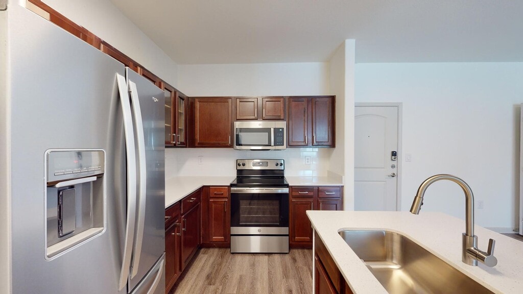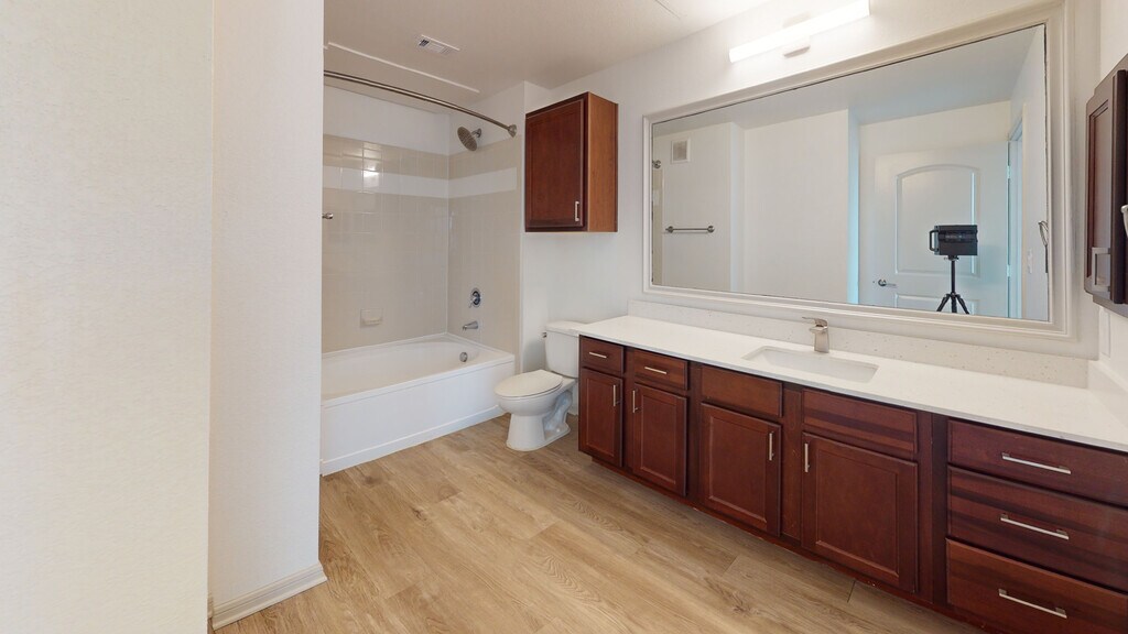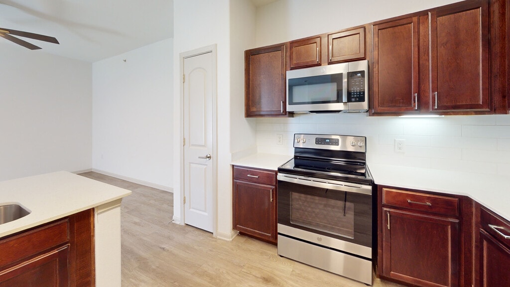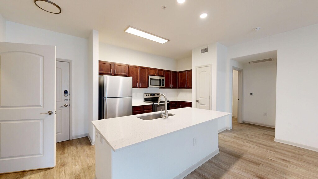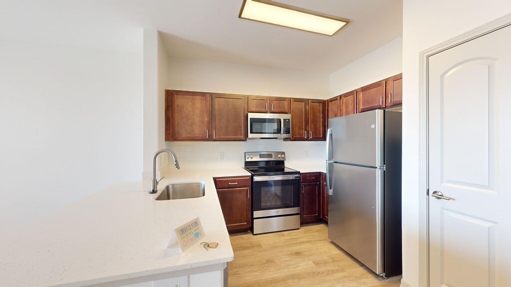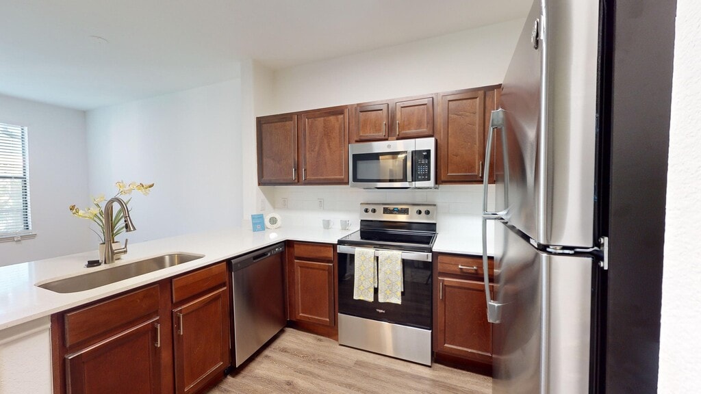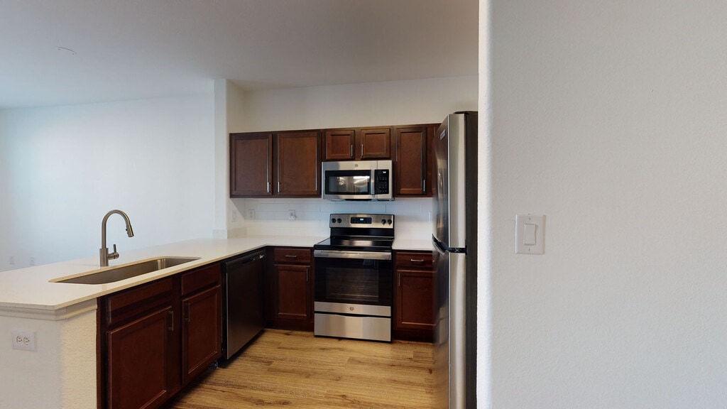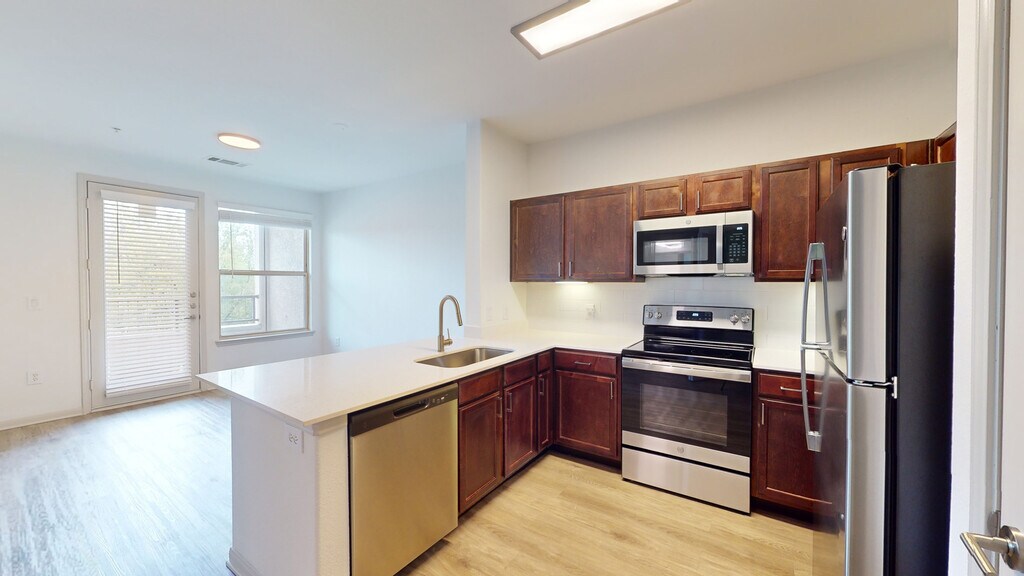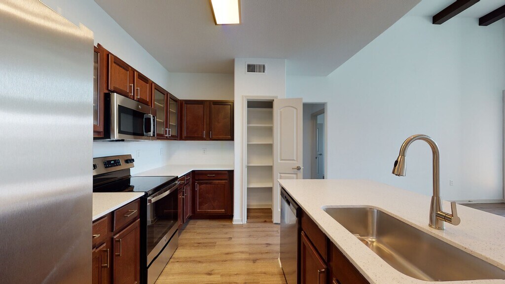 Cool Springs at Frisco Bridges is an inviting, pet-friendly apartment community in Frisco, TX. We offer studio, one-, and two-bedroom apartments for rent featuring spacious work-from-home friendly layouts, wood plank flooring, and private patios and balconies. Newly updated interiors feature quartz countertops, stainless steel appliances, wood plank flooring, and more. Here, enjoy close proximity to the best shops and eateries in Frisco, as well as easy access to beloved sports arenas like The Star and Dr. Pepper Stadium. Plus, commuters will enjoy more time at home with the Dallas-Fort Worth metroplex just 30 to 40 minutes away. That means more time can be spent poolside at one of our three resort-style pools or in the fully-equipped fitness center working towards your health goals. We are currently offering self-guided tours.