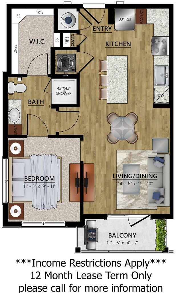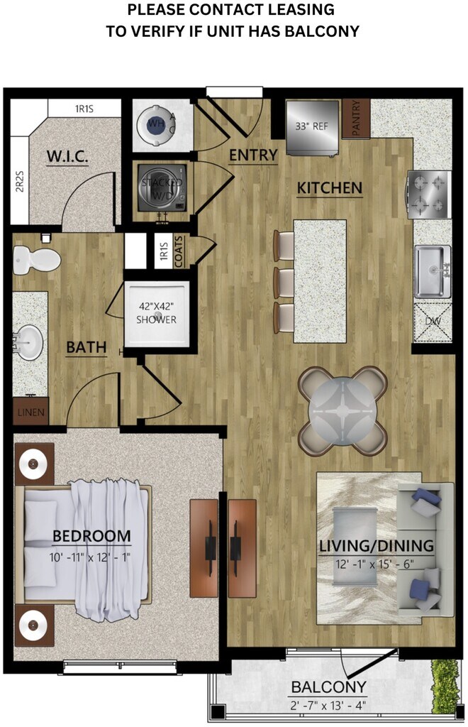 Apartment Model: Minimalist | A1.2 - (e)From $1,2491 Bedroom, 1 Bath, 620 sq ftAvailable Now![]()