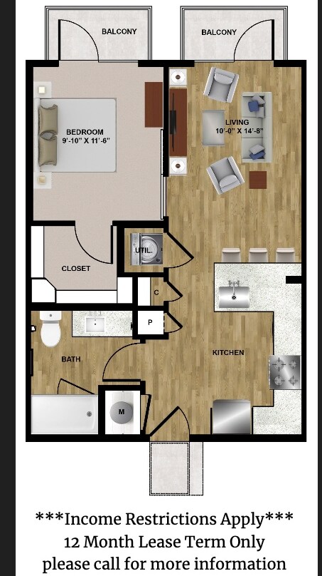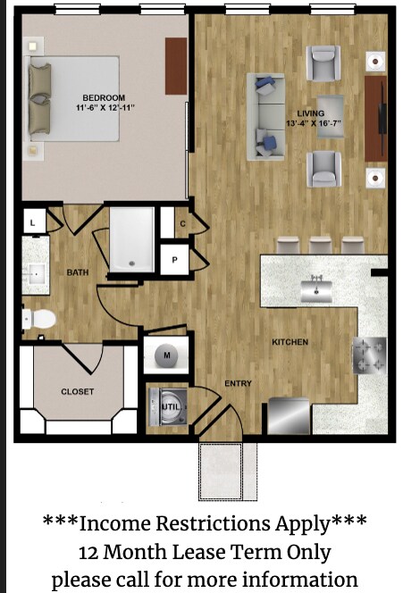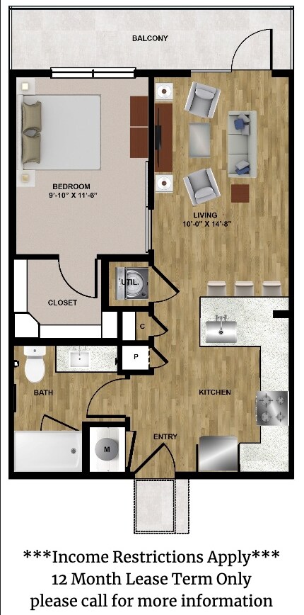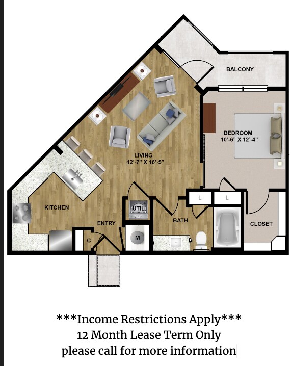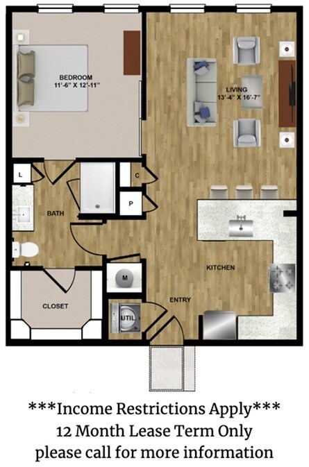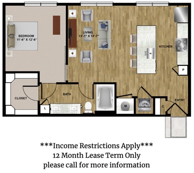Apartment Model: A1(e)-e$1,2661 Bedroom, 1 Bath, 630 sq ftAvailable Now![]()