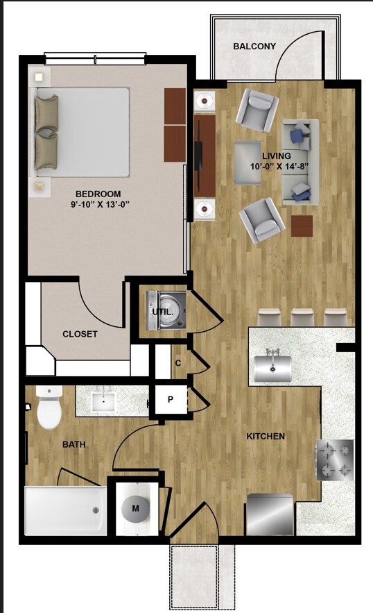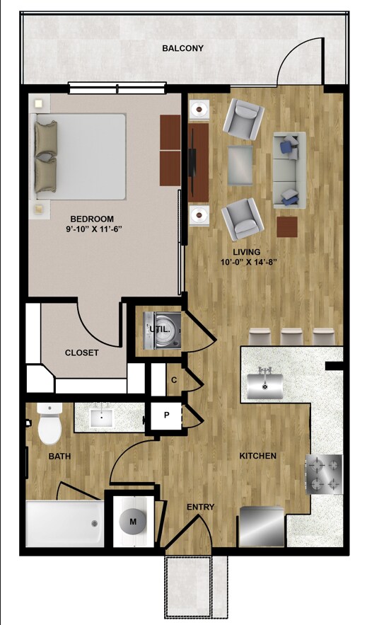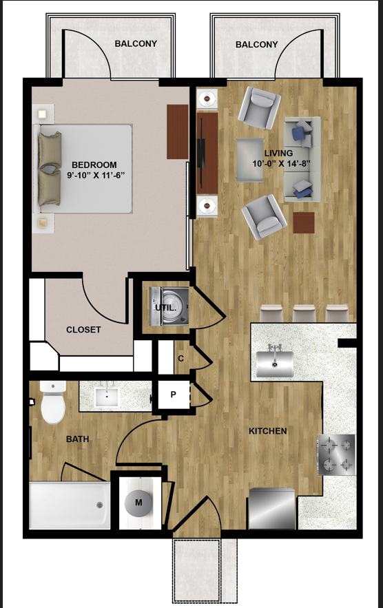 1 Bed, 1 Bath, 630 sq ftAvailable NowModel Gallery