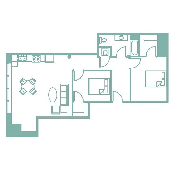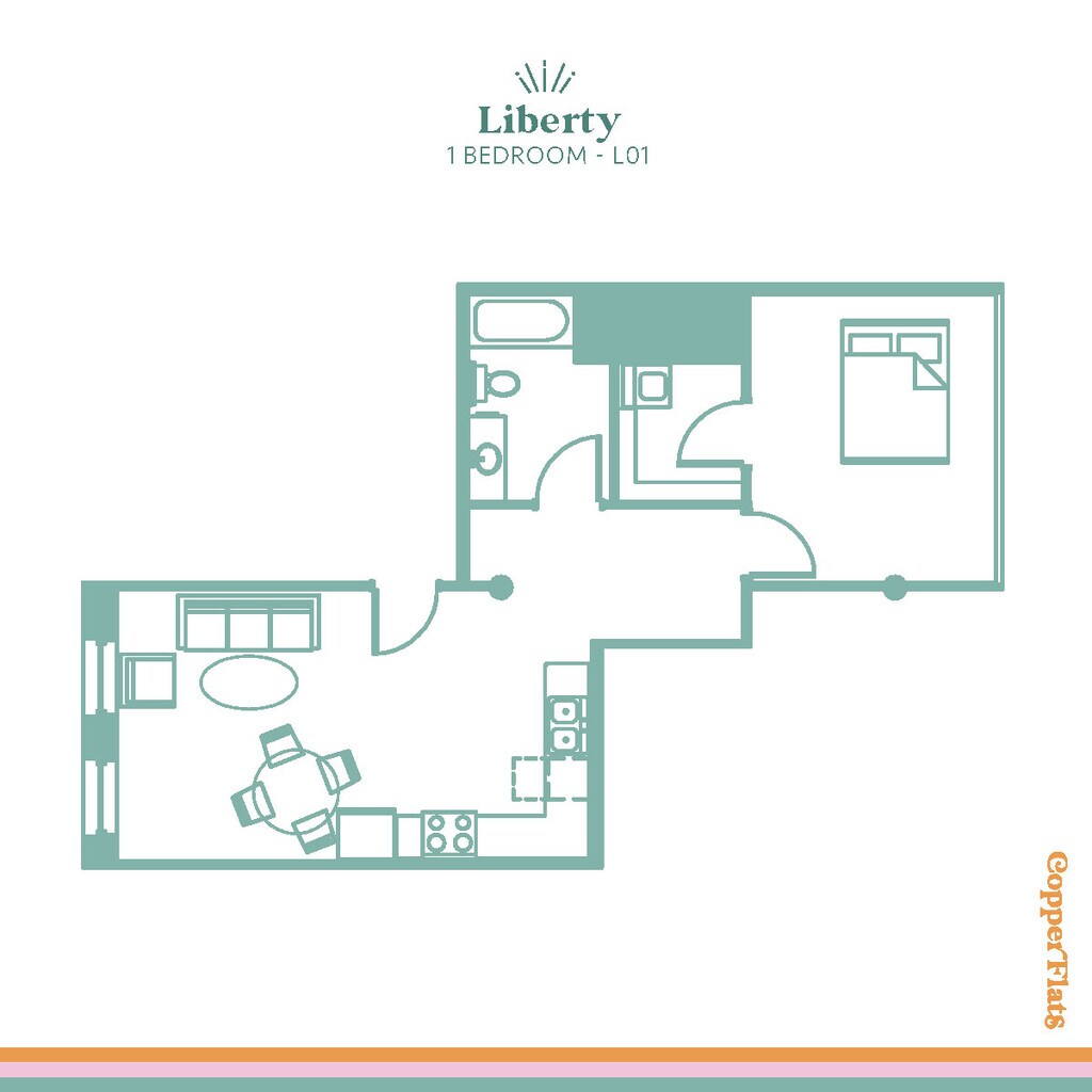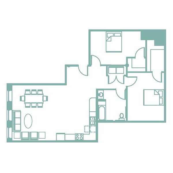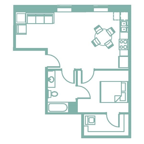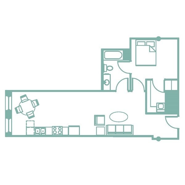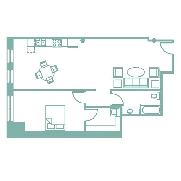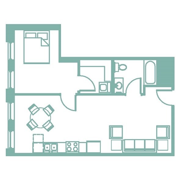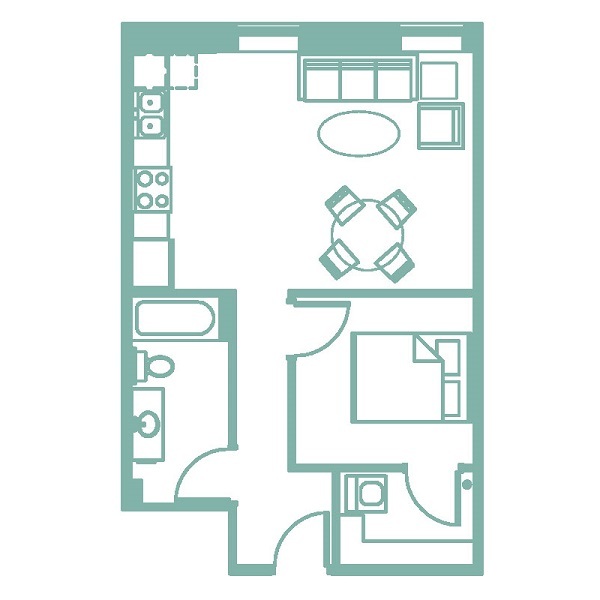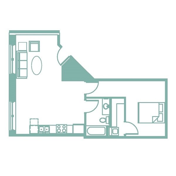 Turquoise - Floorplan 1 1 Bedroom