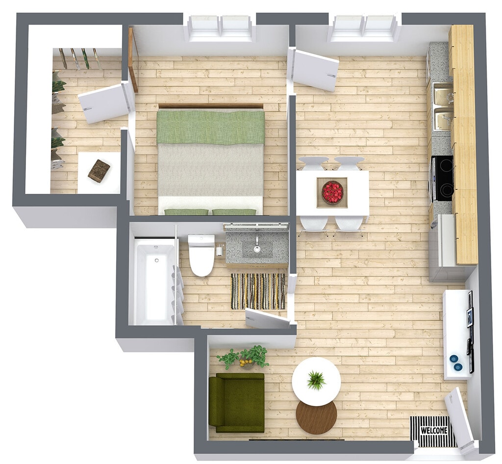 1 Bed, 1 Bath, 561 sq ftModel Gallery