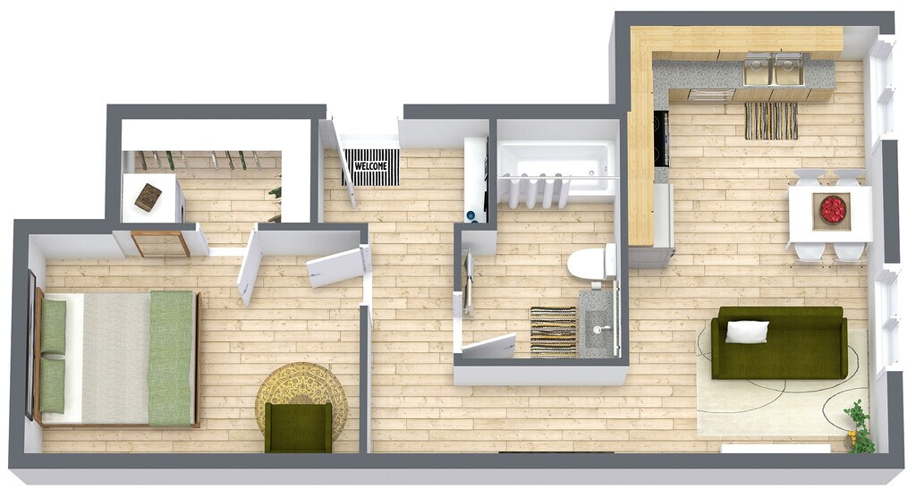 1 Bed, 1 Bath, 568 sq ftModel Gallery