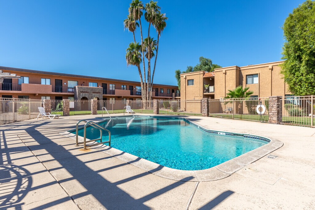 Great location, close to old town Scottsdale and Asle, This apartment community has 2 pools, spa, barbeque area. beautiful nature landscaping. All units have tile floor with new carpet iin the bedroom. Granite countertops and stainless appliances. Call today for a showing!