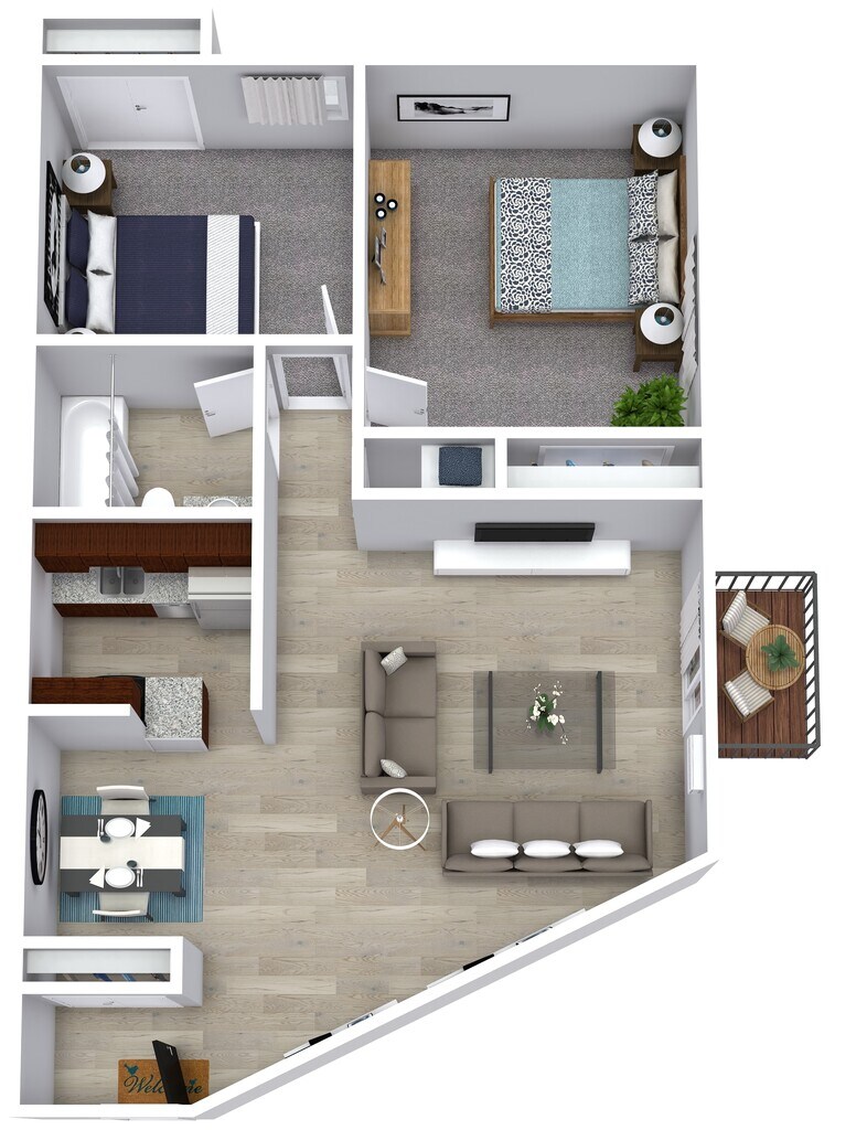 2 Beds, 1 Bath, 900 sq ftPlus FeesAvailable NowModel Gallery