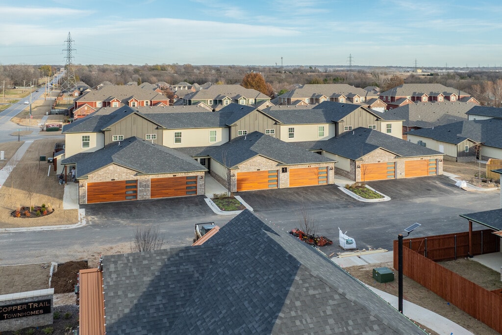 Copper Trail Townhomes brings designer living and everyday practicality together in one stunning community. Each townhome features quartz or granite countertops, stainless-steel appliances, custom cabinetry, wood-style flooring, spacious living rooms, walk-in closets, and private entries all paired with the convenience of attached garages and no one living above or below you. At Copper Trail, every amenity is crafted to elevate your daily experience and give you more reasons to love where you live. Start your morning along the scenic one-mile walking trail, where quiet paths and fresh air help you reset for the day. Evenings come alive around the outdoor fire pit with cozy seating, perfect for unwinding, sharing stories, or enjoying the Oklahoma sunsets. When you’re in the mood for fun, the cornhole lawn and indoor game room bring neighbors together and offer the perfect excuse to laugh a little longer. Stay active on your schedule in the 24-hour fitness center, and give your furry companions room to thrive in the expansive dog park. And whether you're grilling out with friends or enjoying a relaxed Sunday cookout, the community grilling station and open green spaces create the perfect backdrop. At Copper Trail, you don’t just get amenities you get a lifestyle designed for connection, wellness, and easygoing comfort. Located just minutes from Owasso’s top-rated schools, Redbud Festival Park, Target, Starbucks, restaurants, trails, and Highway 169, Copper Trail gives you a life that’s as convenient as it is comfortable.It’s modern design, privacy, and practicality all wrapped into a home you’ll love coming back to.