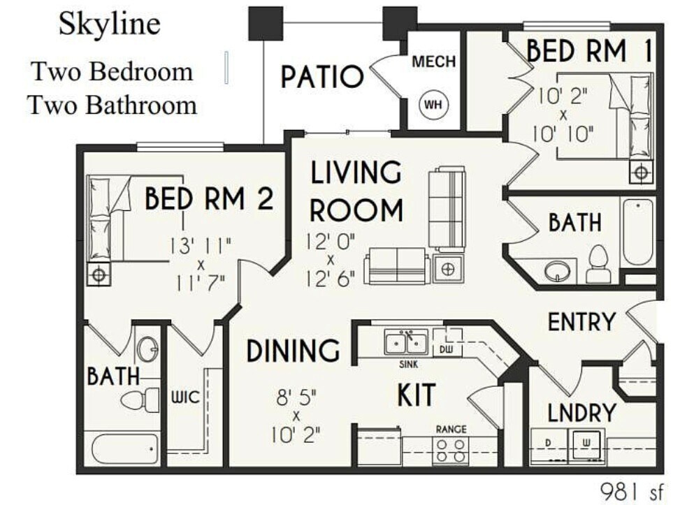Apartment Model: The SkylineFrom $1,8752 Bedroom, 2 Bath, 981 sq ftAvailable Now![]()