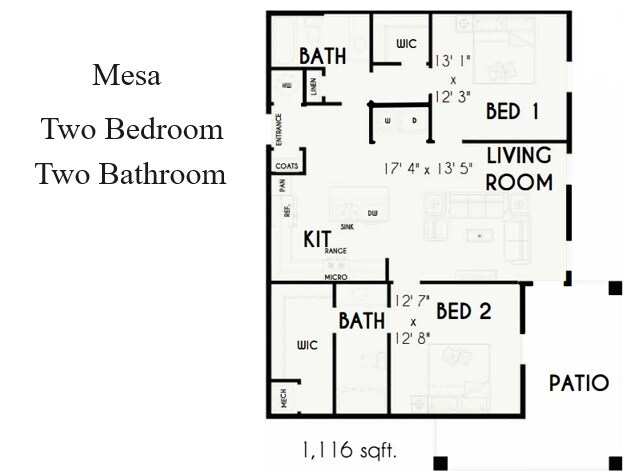 The Mesa - Image 1 Apartment Unit: 237Apartment Model: The Mesa$1,9952 Bedroom, 2 Bath, 1116 sq ftAvailable NowApartment Unit: 228Apartment Model: The Mesa$1,9602 Bedroom, 2 Bath, 1116 sq ftAvailable NowApartment Unit: 231Apartment Model: The Mesa$1,9952 Bedroom, 2 Bath, 1116 sq ftAvailable Now