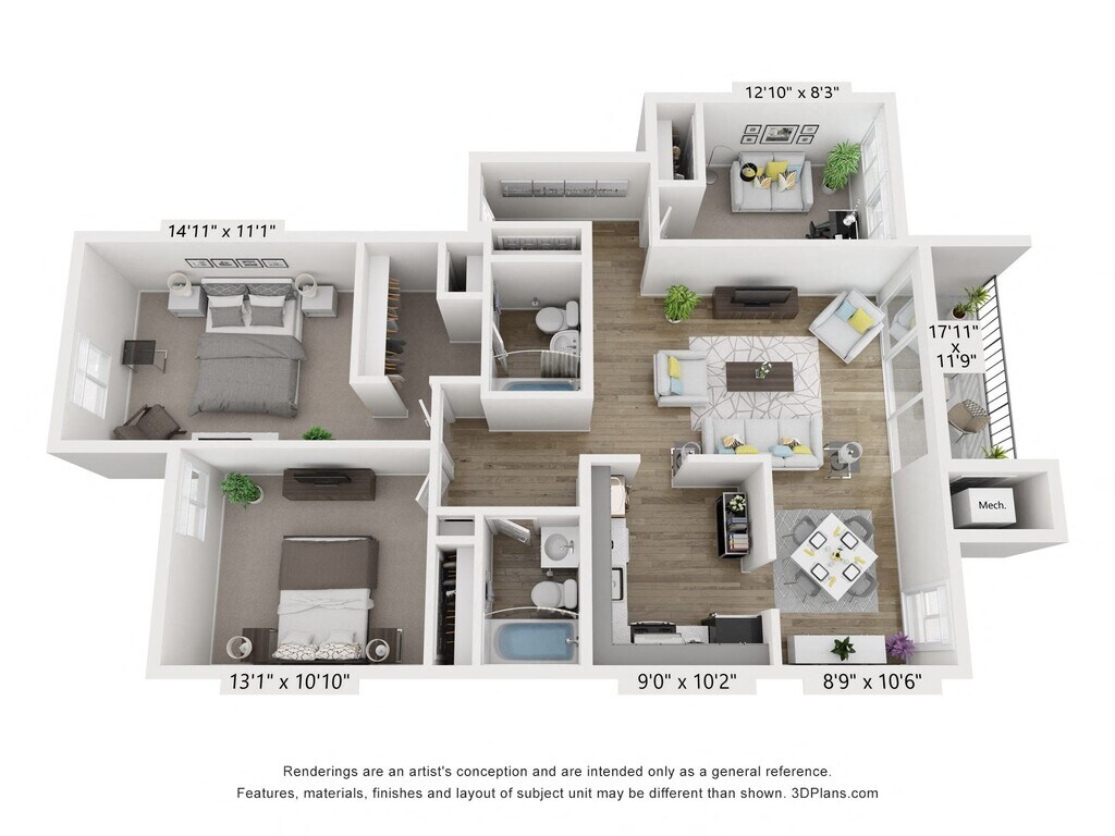 Apartment Model: C - 1BR 1BA (760sf)From $1,3371 Bedroom, 1 Bath, 760 sq ftAvailable Now![]()