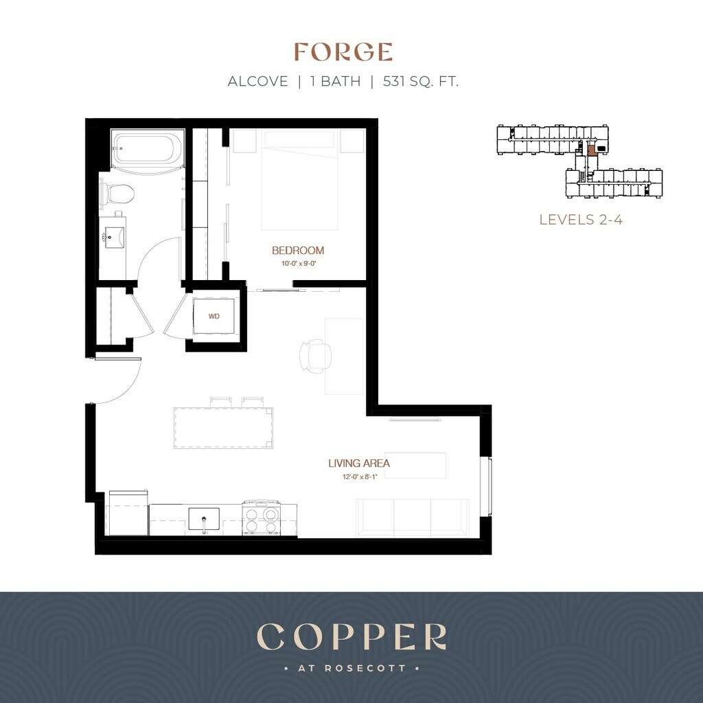 Mineral - ALCOVE - Floorplan 1 Apartment Unit: 104Apartment Model: Mineral - ALCOVE$1,445Studio, 1 Bath, 528 sq ftAvailable June 1, 2026Apartment Unit: 123Apartment Model: Mineral - ALCOVE$1,445Studio, 1 Bath, 528 sq ftAvailable June 1, 2026Apartment Unit: 124Apartment Model: Mineral - ALCOVE$1,445Studio, 1 Bath, 528 sq ftAvailable June 1, 2026Forge - ALCOVE
