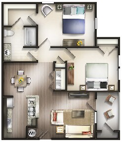 2 Beds, 2 Baths, 1141 sq ftAvailable NowModel Gallery