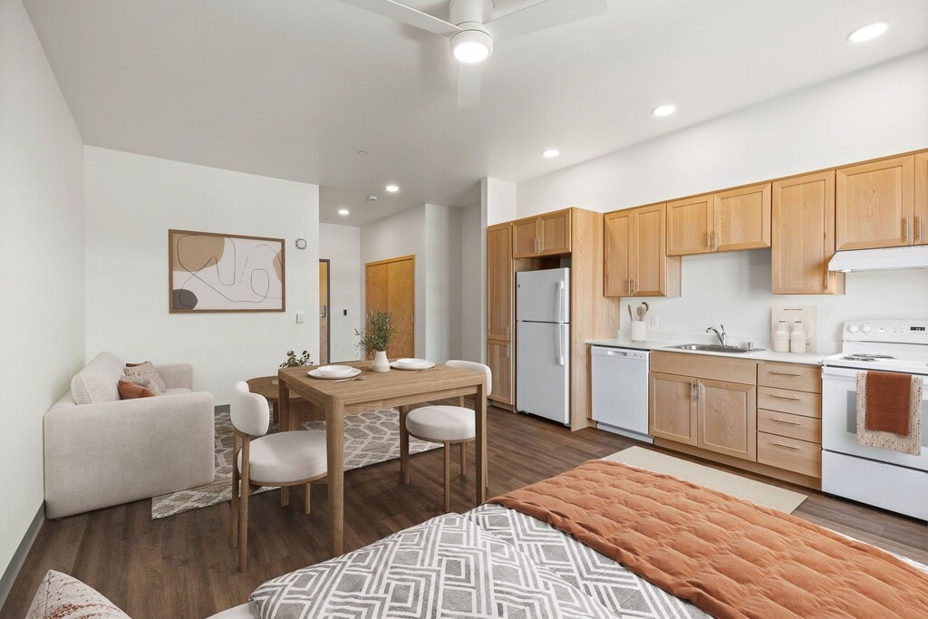 Just across the street from the Northgate Light Rail station, our affordable one-of-a-kind apartment homes in Seattle blend modern features, essential services, and spaces that support connection and growth. With spacious floor plans, brand-new appliances, and hospitable amenities like a community kitchen, on-site daycare, media lounge, and more, every detail supports a life of comfort and opportunity.