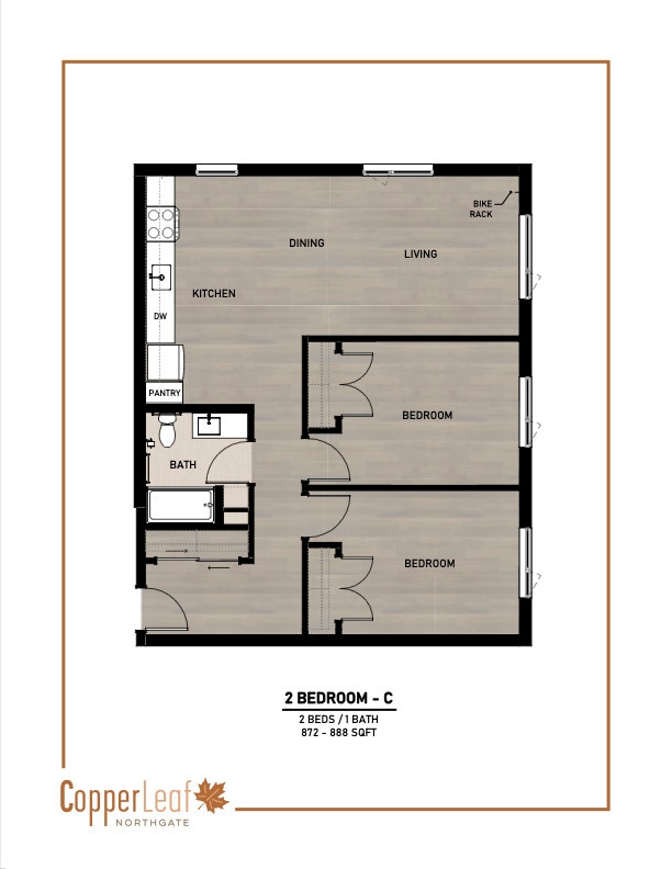 2 Beds, 1 Bath, 888 sq ftAvailable NowAvailability Details