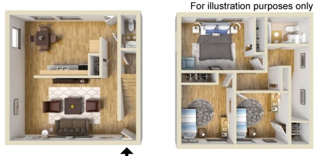 Apartment Model: Three BedroomCall For Rates3 Bedroom, 1.5 Bath, 950 sq ftUnavailableThree Bedroom - Floorplan 1
