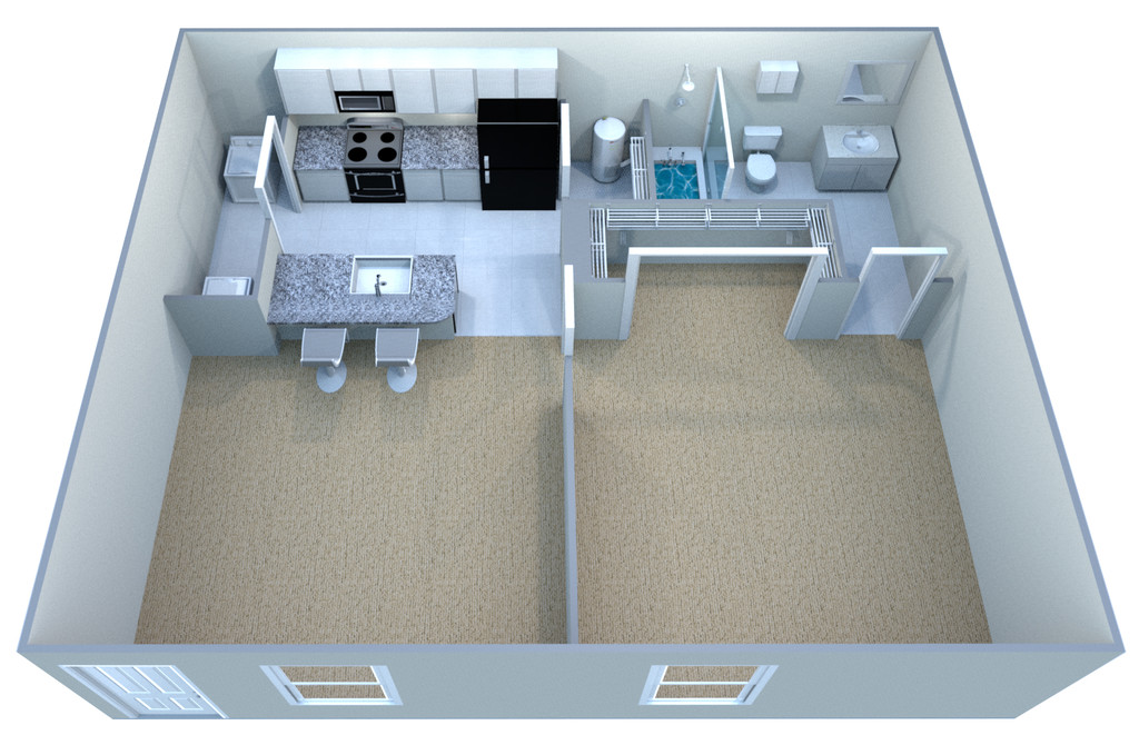 1 Bed, 1 Bath, 544 sq ftModel Gallery