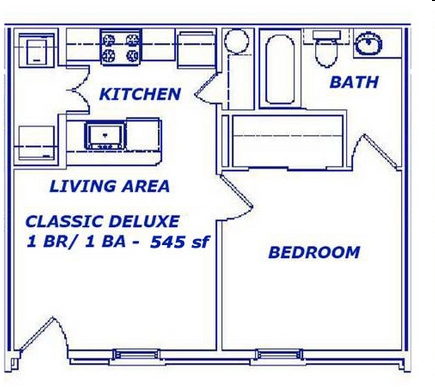Apartment Model: Classic Deluxe II$8501 Bedroom, 1 Bath, 545 sq ftAvailable NowFloorplansPhotosClassic Deluxe II - Image 1 Classic Deluxe II - Image 2 Classic Deluxe II - Image 3 Classic Deluxe II - Image 4 Classic Deluxe II - Floorplan 5 Classic Deluxe II
