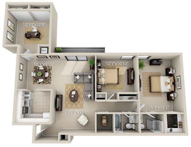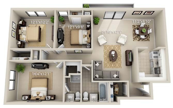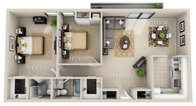 2 Beds, 2 Baths, 1191-1200 sq ftAvailable NowLargest 2 BedroomThis is the largest 2 Bedroom at this PropertyModel Gallery