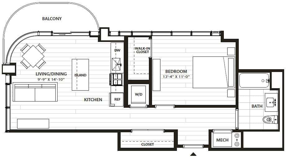 Studio, 1 Bath, 587 sq ftAvailable NowLargest StudioThis is the largest Studio at this PropertyModel Gallery