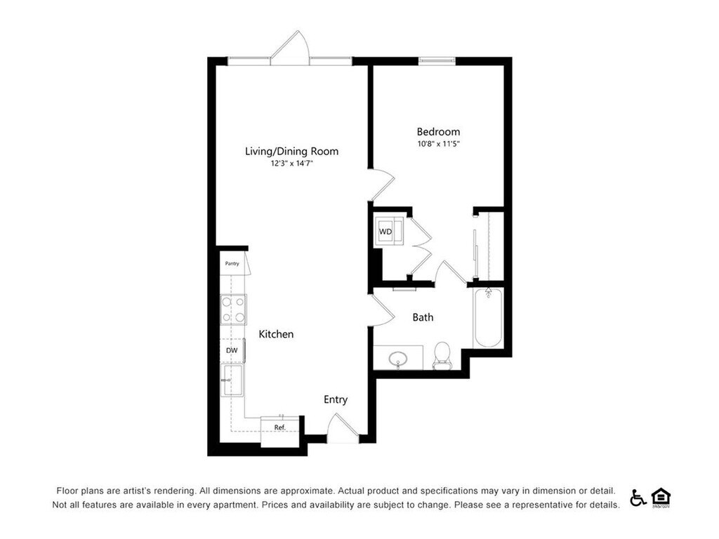 Apartment Model: M-A1$2,7951 Bedroom, 1 Bath, 641 sq ftAvailable NowFloor plans are artist's rendering. All dimensions are approximate. Actual product and specifications may vary in dimension or detail. Not all features are available in every rental home. Prices and availability are subject to change. Base rent is based on monthly frequency. Additional fees may apply, such as but not limited to package delivery, trash, water, amenities, etc. Deposits vary. Please see a representative for details.