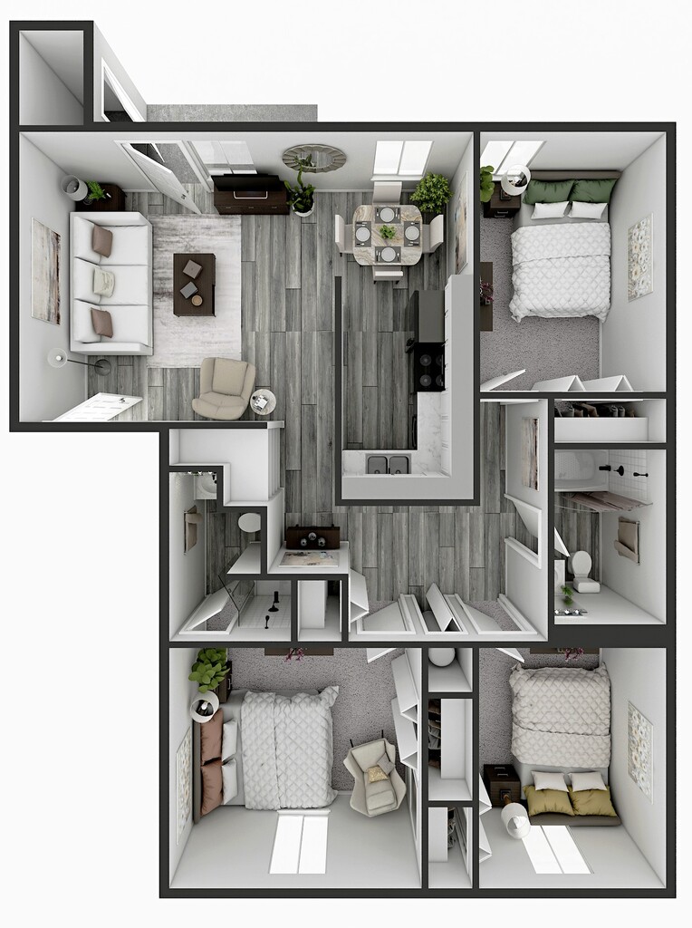 Apartment Model: 3BD - 2BAFrom $1,0993 Bedroom, 2 Bath, 1023 sq ftAvailable Now![]()