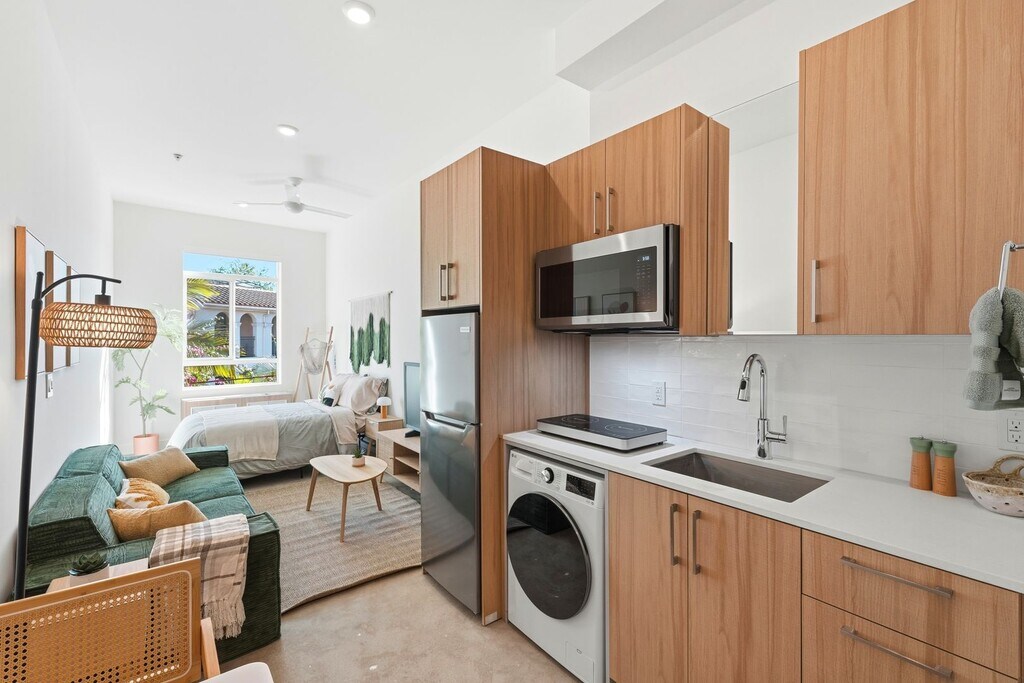 Brand New Studio Steps from Echo Park Lake and Sunset Blvd! Beautiful studio in LA's most vibrant new building, Coral! Nestled on a residential street but still only steps from Echo Park Lake and Sunset Boulevard with many restaurants including Taix, Larchmont Bungalow Cafe, Breakfast Republic, and Chipotle. Target, Vons, Sprouts, Starbucks, McDonalds, Walgreens, and many more are within a half mile. Modern studio has blonde cabinetry, polished concrete floors, air conditioning, stainless-steel refrigerator, double burner induction cooktop, full bathroom with shower, and washer/dryer in-unit. Access to full kitchen. Coral has an on-site fitness center and a landscaped community patio with BBQ grill. Come check out Coral today!