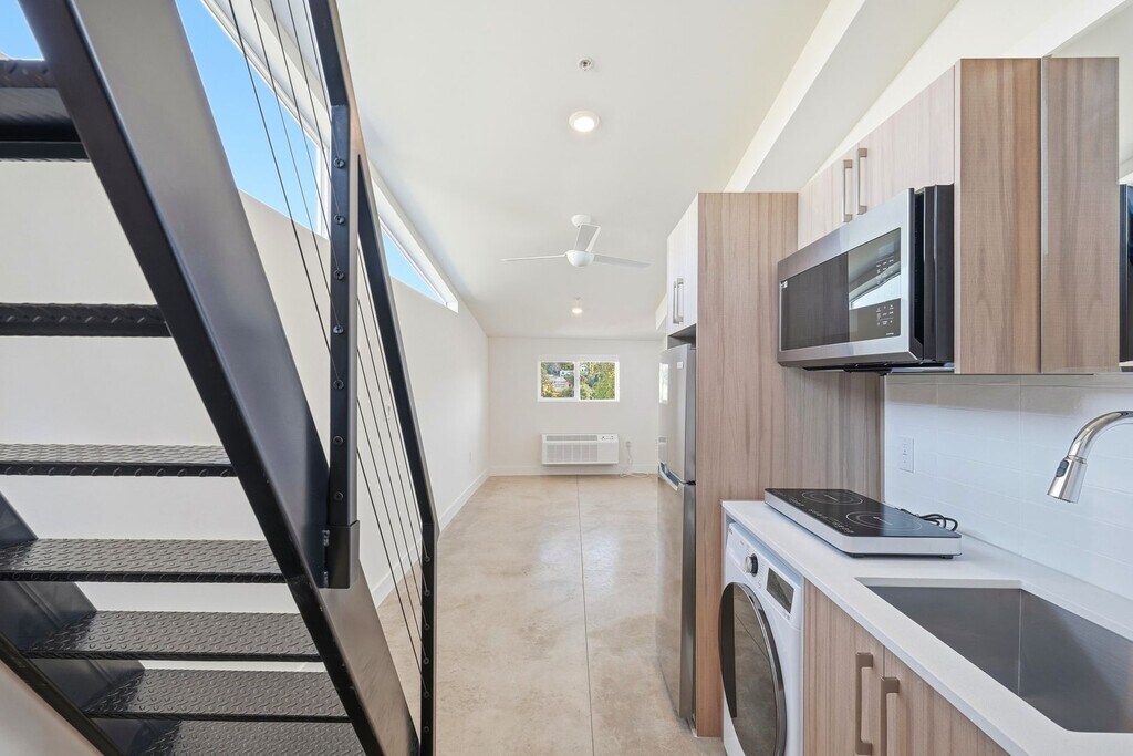Beautiful studio with Loft in LA's most vibrant new building, Coral! Nestled on a residential street but still only steps from Echo Park Lake and Sunset Boulevard with many restaurants including Taix, Larchmont Bungalow Cafe, Breakfast Republic, and Chipotle. Target, Vons, Sprouts, Starbucks, McDonalds, Walgreens, and many more are within a half mile. Modern studio has blonde cabinetry, polished concrete floors, air conditioning, stainless-steel refrigerator, double burner induction cooktop, full bathroom with shower, and washer/dryer in-unit. Access to full kitchen. Coral has an on-site fitness center and a landscaped community patio with BBQ grills. Come check out Coral today!