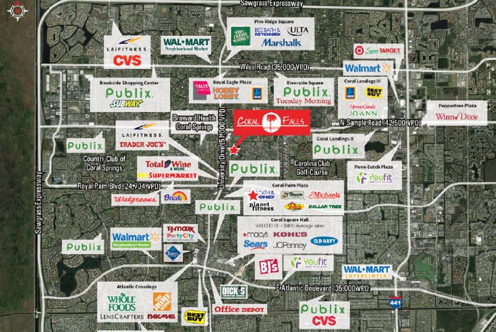 Coral Falls has 5 shopping centers within 0.4 miles.